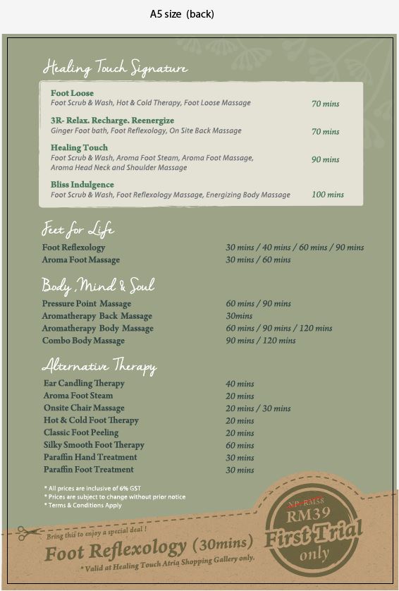 The Healing Touch outlet in Atria Shopping Gallery, Damansara Jaya, Petaling Jaya was opened on 16 September 2016. This is the brand’s first outlet in the Klang Valley, and aims to provide traditional foot reflexology at a reasonable price. The therapists at Healing Touch are trained and have been with working with the brand for some time.