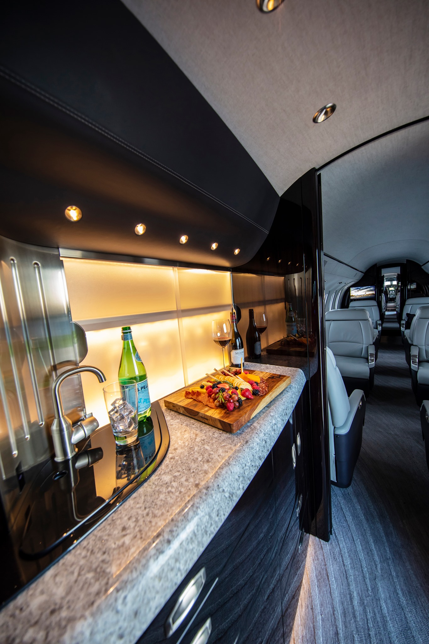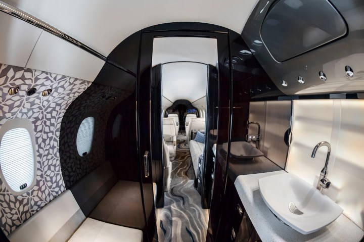 A standard double-club configuration delivers the most legroom in the super-midsize class. Fully berthable seats are designed and manufactured in-house and a class-leading walk-in baggage compartment is accessible throughout the entire flight. State-of-the-art cabin technology enables passengers to manage their environment and entertainment from any mobile device, while high-speed internet maximizes in-flight productivity.