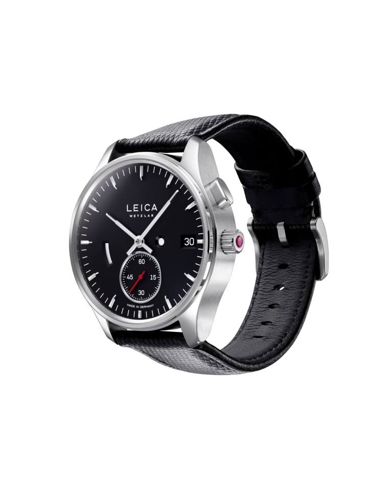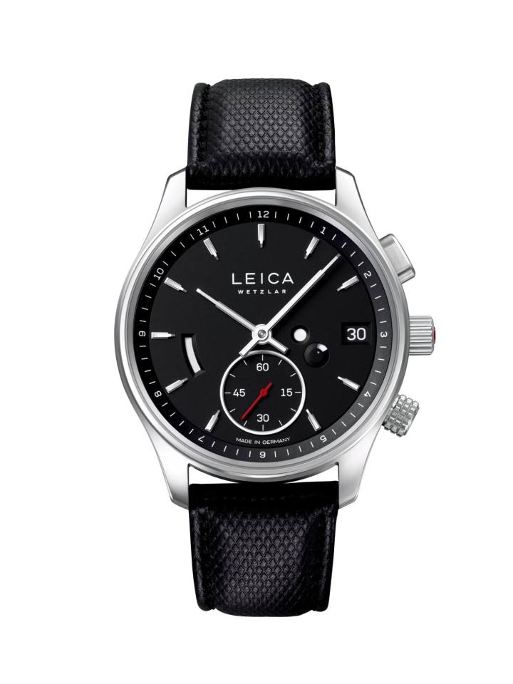 The Leica signature look can be found in the design elements and features of the watches: the elegance of the hands and indexes, the shape of the finely-detailed stainless-steel case, the special fluting on the crown and the cambered shape of the glass that is reminiscent of a camera lens.