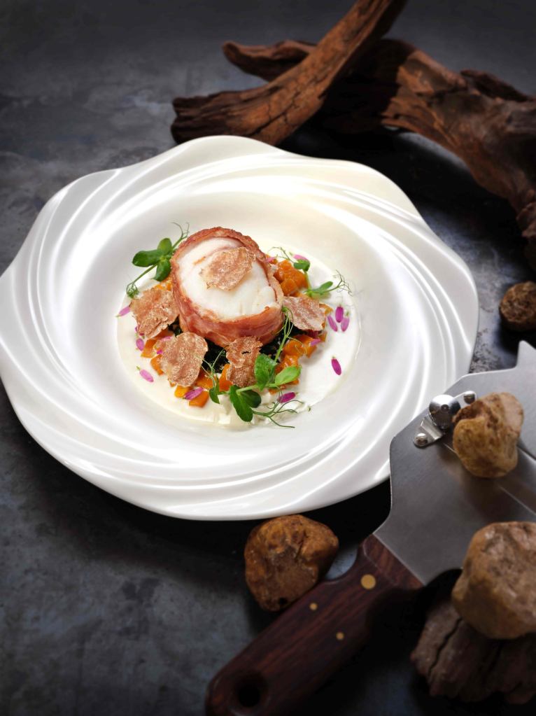 The fungus also adds depths of flavour to Tortelli with ox tail, porcini mushrooms, red wine sauce and white truffle, a typical filled pasta dish from Tuscany; as well as extraordinary Monkfish, Parma ham, chard, pumpkin and white truffle – the fish is first slow-cooked then wrapped in exquisite culatello ham, the most prized of all hams from the Emilia-Romagna region, and pan-fried for a taste of saltiness to embellish the silky fish. The most extravagant of all is Wagyu carpaccio, pan-seared foie gras with chanterelle mushroom and white truffle, as it amasses three gourmet ingredients in one harmonious serving. Sensations of sweetness and umami combine in traditional white chocolate, hazelnut and white truffle parfait with cherries to give diners a unique dessert experience.