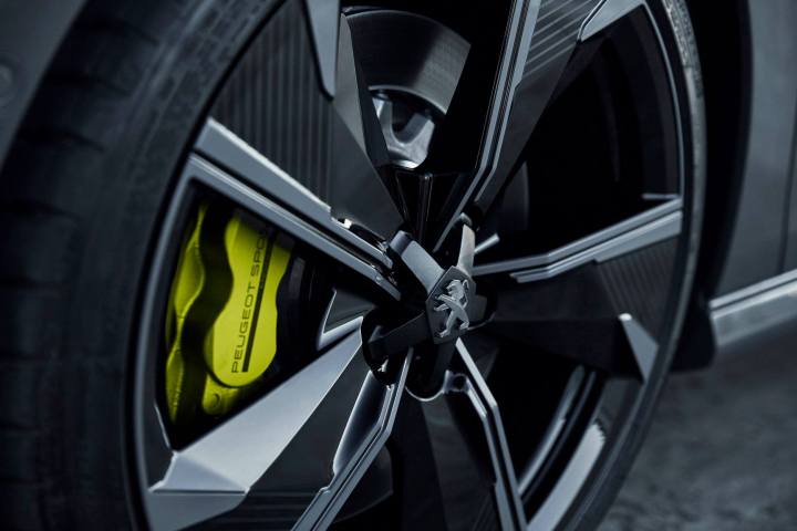 In addition to their dynamic design, the new 20″ alloy wheel rims allow for improved brake cooling. The engraved finish is an elegant and sporty blend of onyx black and selenium grey. The wheel bolt covers are star-shaped, fully hiding the wheel bolts and providing unprecedented attention to detail. The wheel rims allows a glimpse of the PEUGEOT SPORT ENGINEERED signature on the brake callipers which also sports the kryptonite colour code.