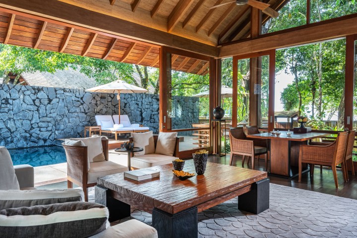 The Datai Estate Villa — The Datai Estate Villa deserves a prominent introduction as the resort’s newest addition; with its expansive five-bedroom facility, spanning 3,500 square metres (approximately 37,700 sqft). The exclusive space features alluring neutral tones with modern furnishings, living rooms, game rooms, two 20-metre connected pools, 24-hour butler service, as well as a private chef.