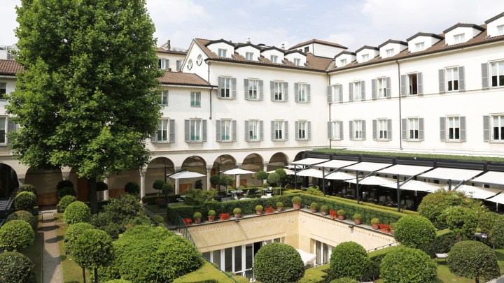 The ice creams are served in the hotel’s cloistered garden, a veritable oasis of peace in the heart of the Fashion District. Formerly part of a 15th century convent, the garden was once used to cultivate vegetables and herbs; today, the manicured courtyard is a tranquil spot to sit back and unwind, away from the hubbub of central Milan.