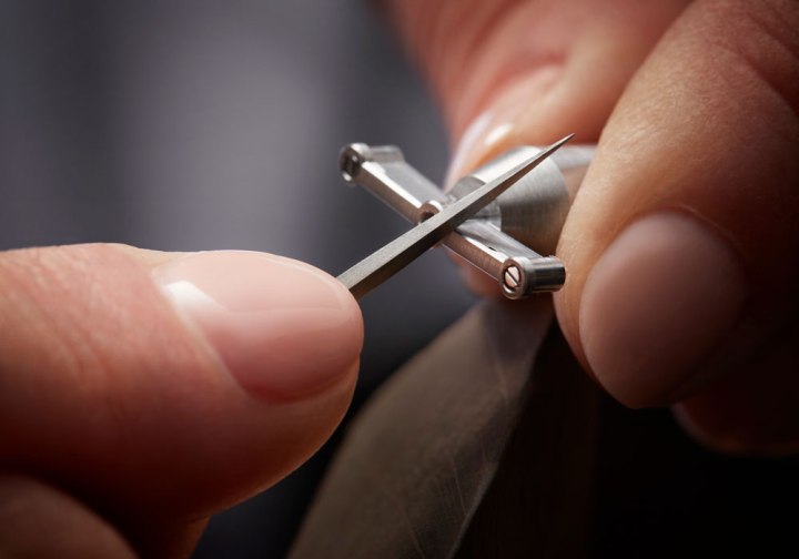 This kind of work on an item like this is a first at Breguet. The sharp edges are painstakingly chamfered by hand, using a file until a perfectly smooth and even 45-degree bevel is created. Significant engraving work is then carried out by hand for different inscriptions as well as borders to frame the holes.
