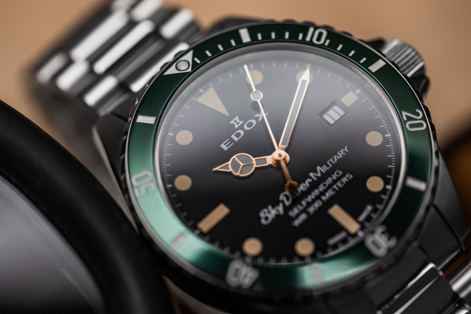 Paying homage to its 135 year history, Edox has brought back a watch from its archives and is releasing a new EDOX SkyDiver, suitable for aficionados of fine military timepieces. The limited edition version, named the EDOX SKYDIVER MILITARY, is powered by an automatic three-hand Swiss movement calibre 80.