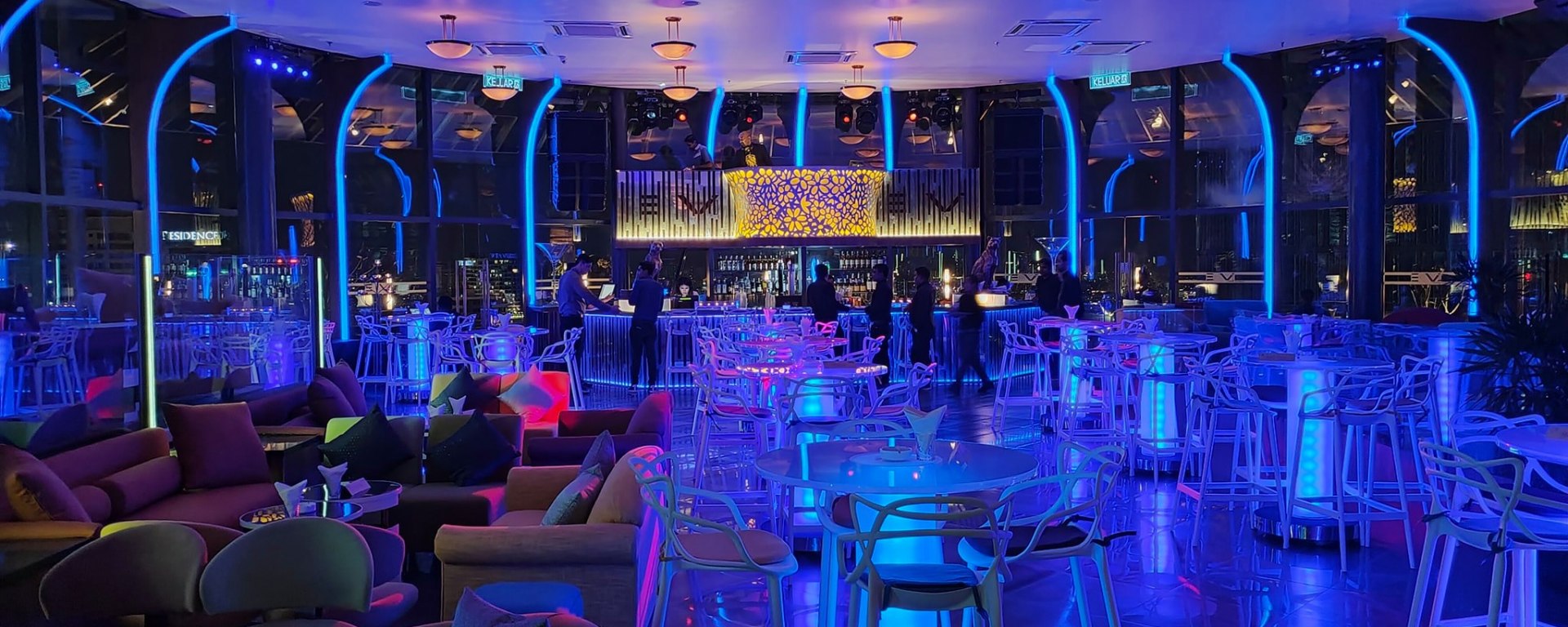 The establishment is divided intro three (3) main area namely the restaurant section (for dining), the club section which can also be transformed into an event space, and the almost 340 degree outdoor bar area which offers a panoramic view of the Kuala Lumpur skyline, including the Petronas Twin Towers.