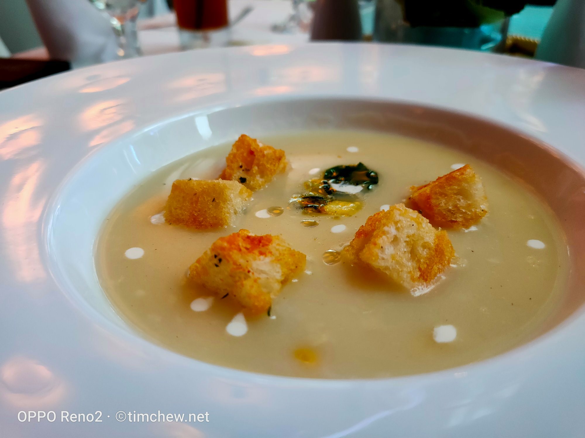 A heartwarming soup with garlic croutons that really added a nice contrasting texture and flavour to the dish.
