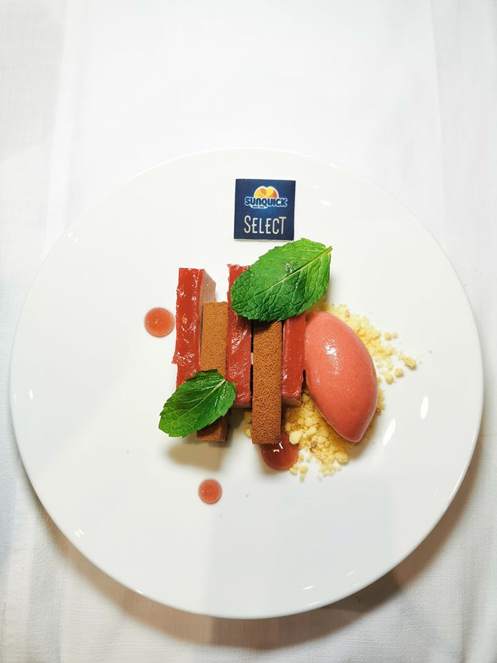 The second course consisted of the “Pink Rush” mocktail paired with local clams, tomatoes, saffron spiced broth with hint of Sunquick Lemon. This menu-pairing offered an intense musk flavour and an overall fruity-inspired recipe. The ‘Pink Rush’ mocktail gave a hint of umami from the Aquafaba and Sunquick Pink Guava and strawberry syrup while the use of basil added a fragrant herb aroma to the mocktail.