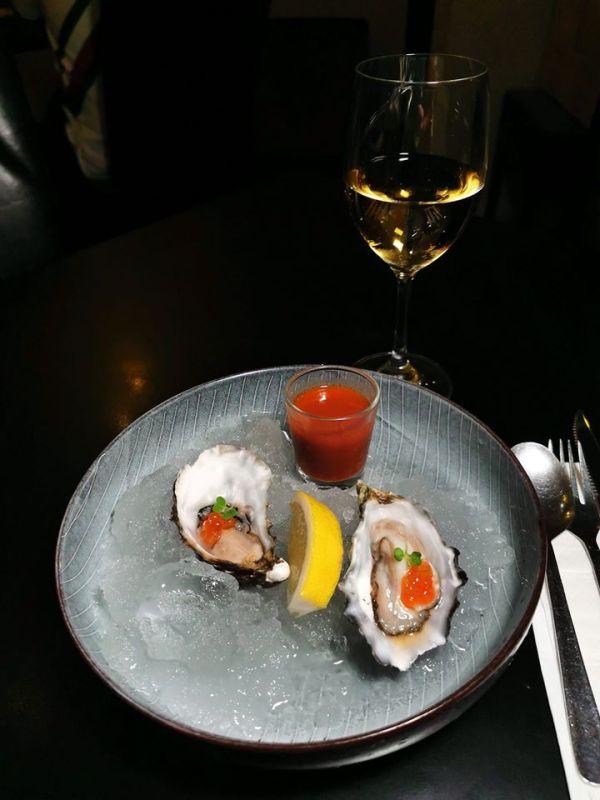 A pair of freshly shucked oysters (one per person) topped with caviar. Opt to have it with the bloody Mary shot or on its own. This delightful starter will get the romantic juices flowing…