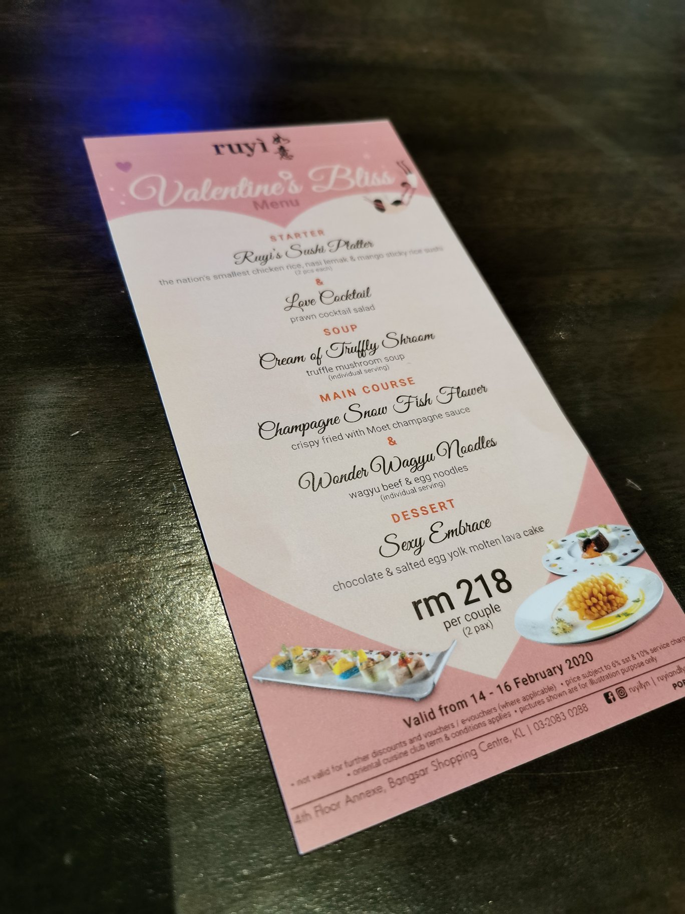We recently headed over to RUYI & LYN 如意 at Bangsar Shopping Centre to try their upcoming Valentine’s Day menu. My partner in crime and I normally do Western dining for Valentine’s Day however it’s nice to try something different to keep things fresh.