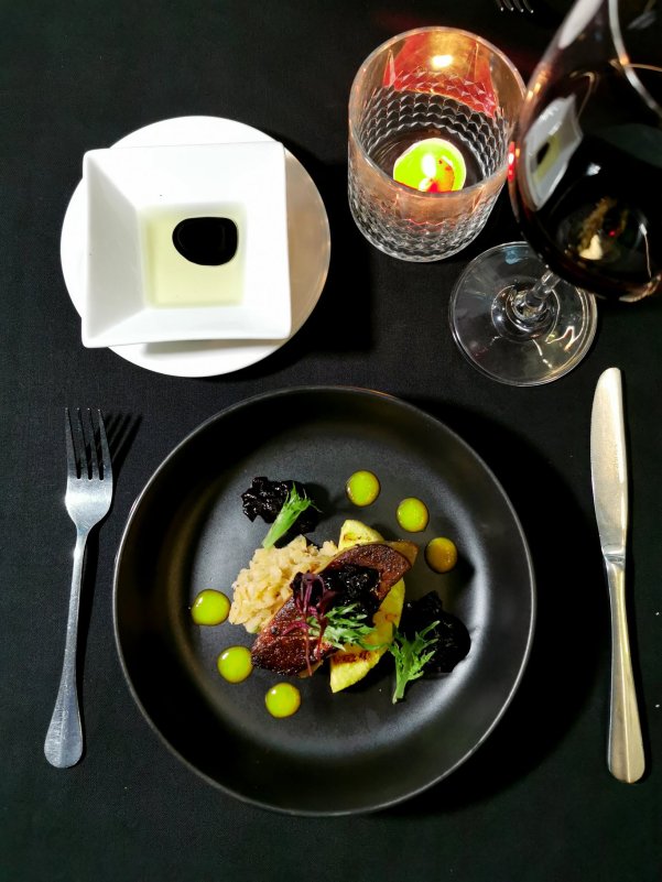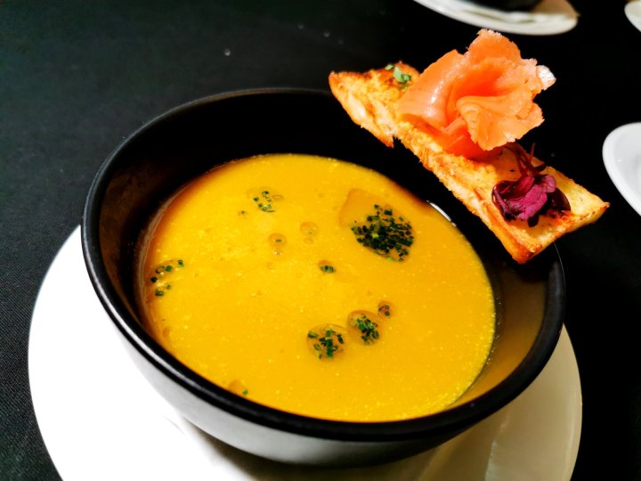 The heartwarming pumpkin and garlic soup was interesting, and fortunately the garlic wasn’t noticeable otherwise it’ll be hard to kiss your partner after dinner with the garlic breath! The crostini on the side with the smoked salmon was an added dimension to the dish and complemented it well!