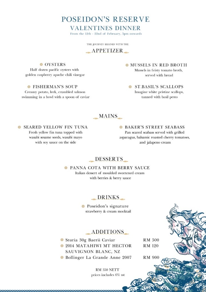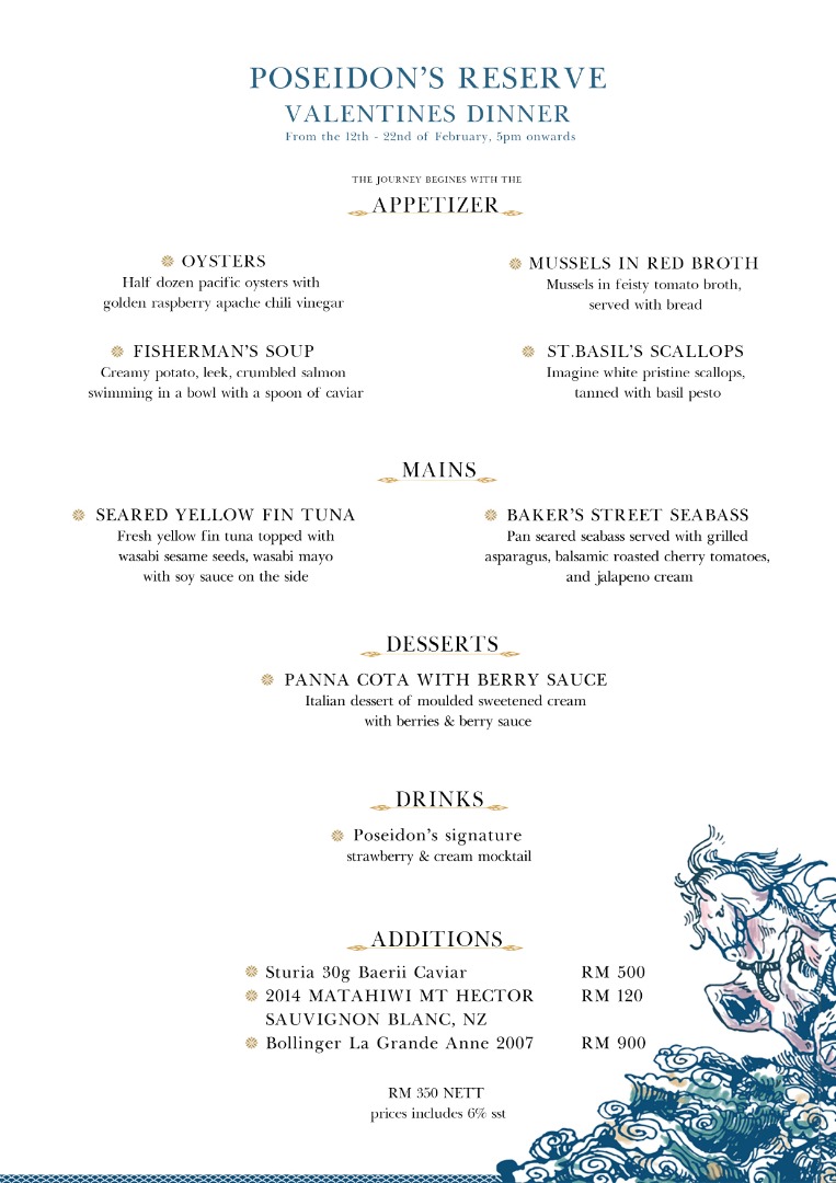 This Valentine’s Day, POSEIDON brings the bounties of the oceans into the heart of Kuala Lumpur. Take your taste buds on an Adventure across the sea with Poseidon Reserve’s specially curated Valentine’s dinner from the 12th to 22nd of February 2020.