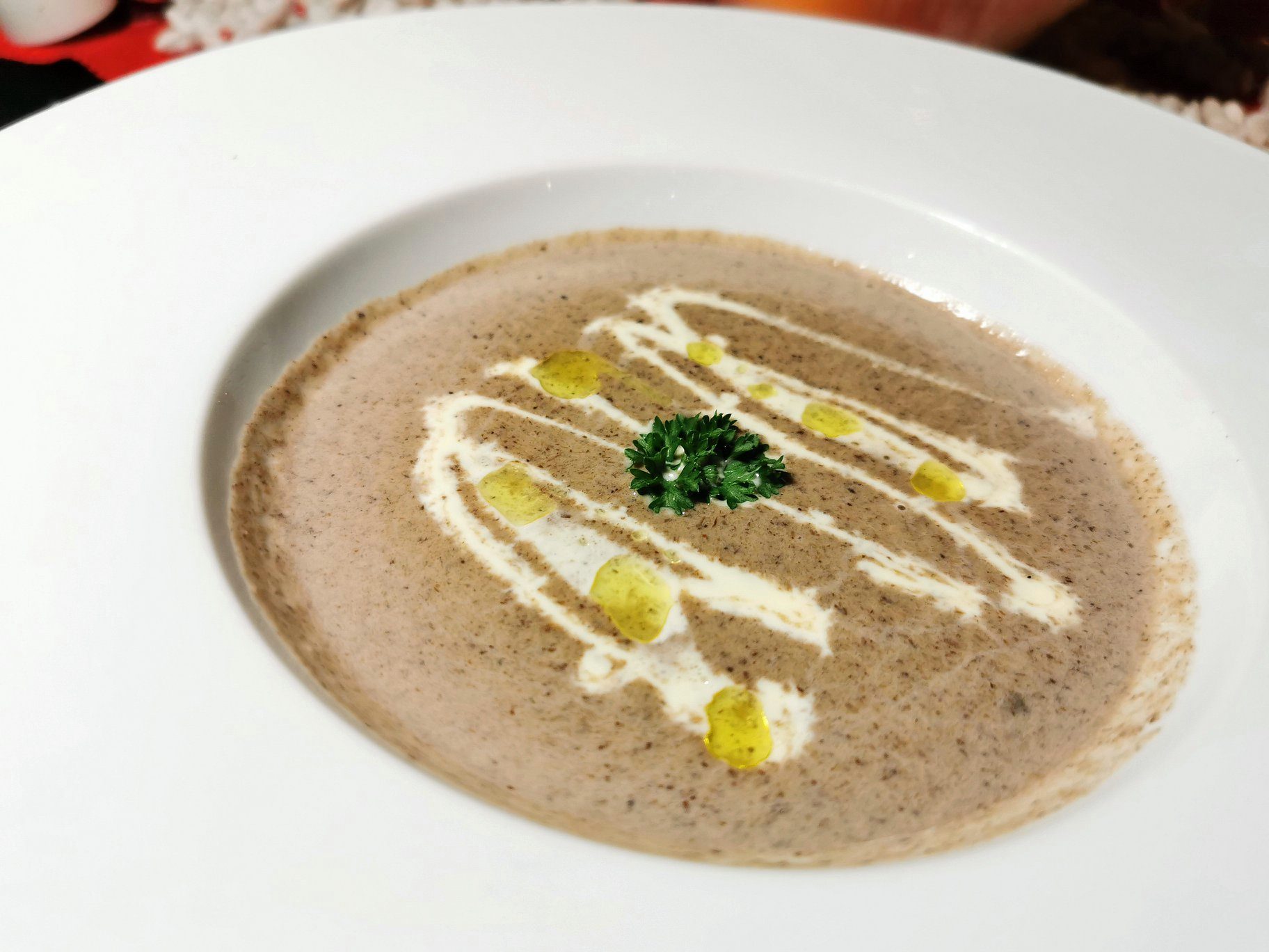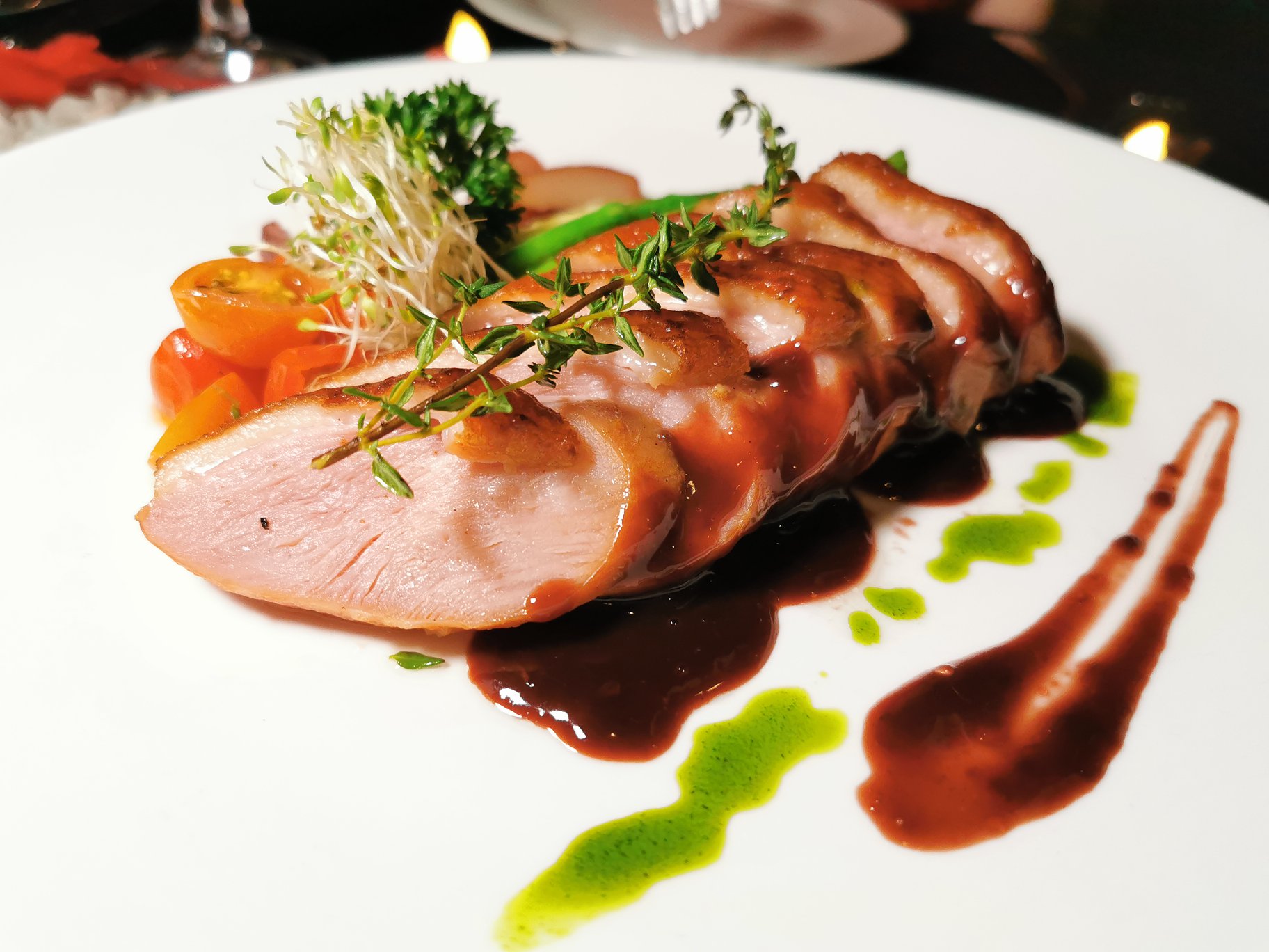 3 course dinner meal served after the session with Truffle Mushroom Soup + Seared Duck Breast or Grilled Lamb Rack + Dessert