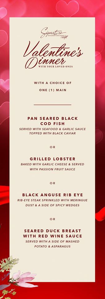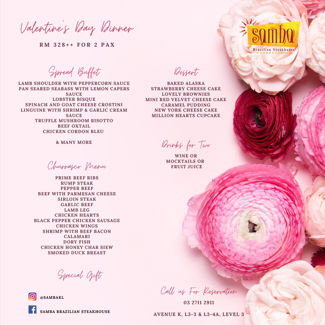 The Valentine’s Package for 2 pax is priced at RM328++ and includes: