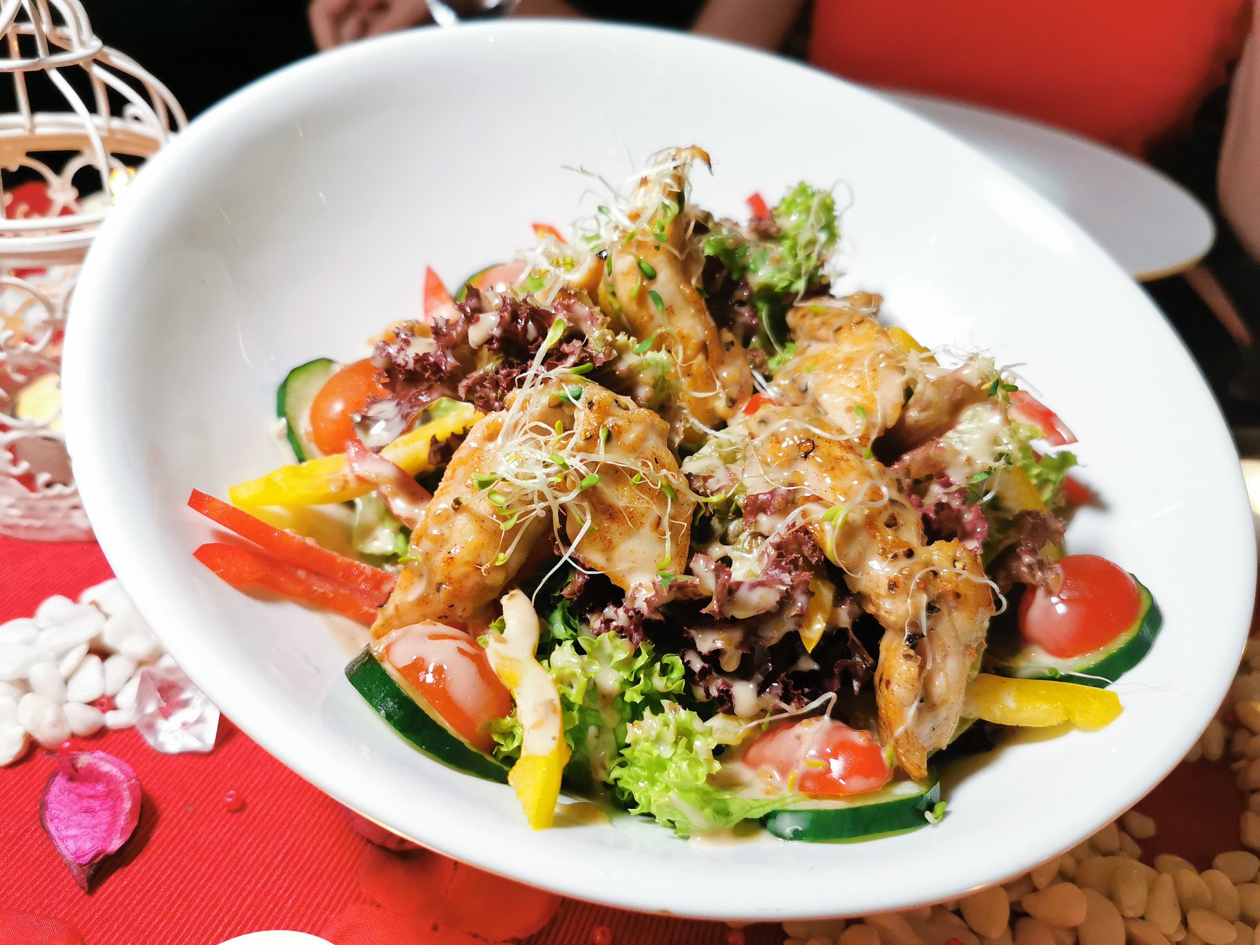 A very refreshing little starter with a rich Malaysian twist – coconut cream/ santan, as well as crispy lotus root. A delightful mix of flavours and textures.