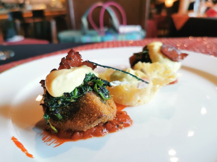 Walking into the establishment, you’ll be transported into a warm and elegant restaurant with dark wooden furniture befitting a venue that’s most suitable for romantic dates. The pizza oven in the corner, as well as the wine cellar and lounge add to the whole ambiance while the long L shaped bar is conducive for pre/ post-dinner drinks.