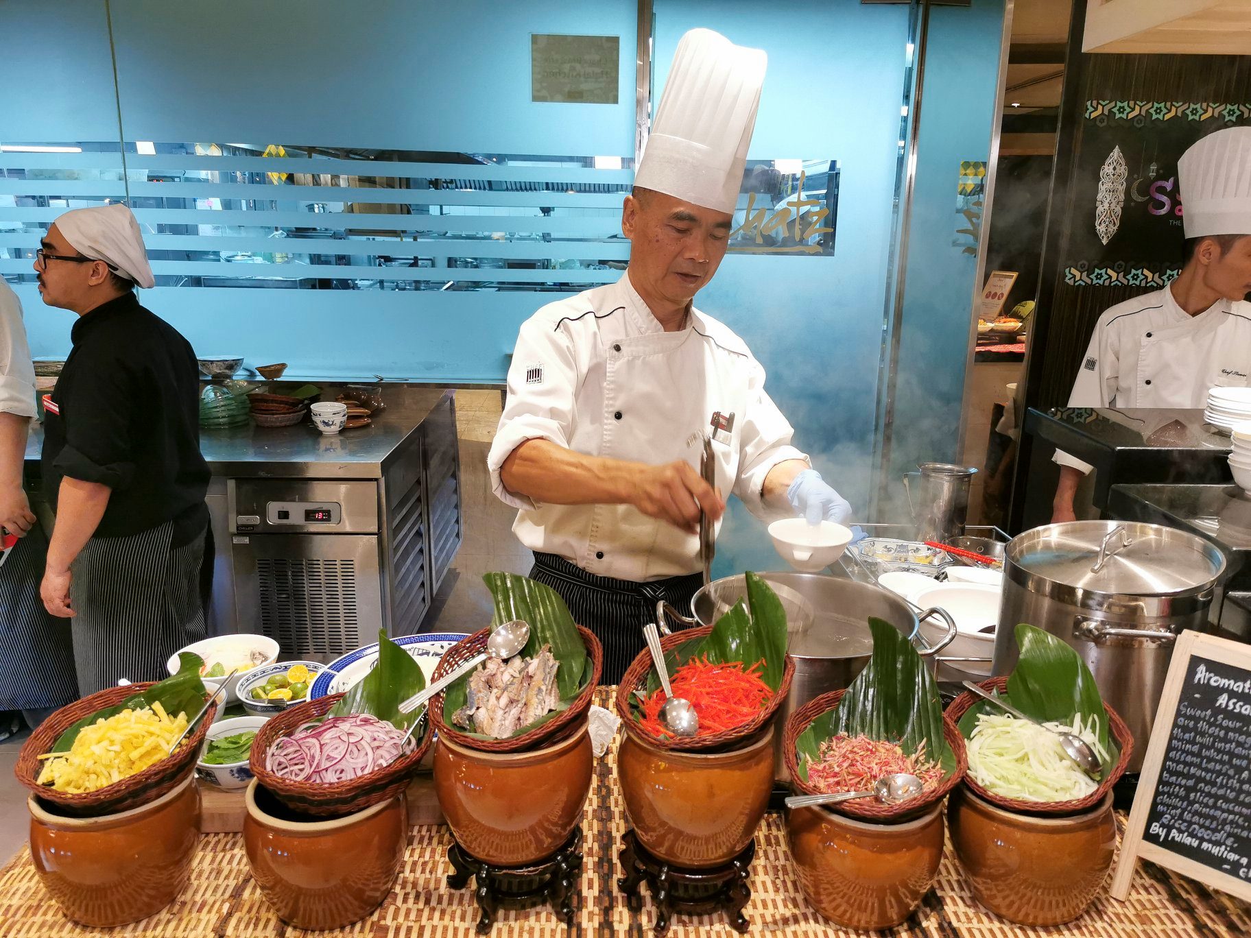 Look out for the famous Penang Assam Laksa by Chef Chew, served with sliced cucumber, onions, chilies, pineapple julienne, lettuce, mint leaves, ginger bud and rice noodle, in an aromatic and flavourful fish broth.