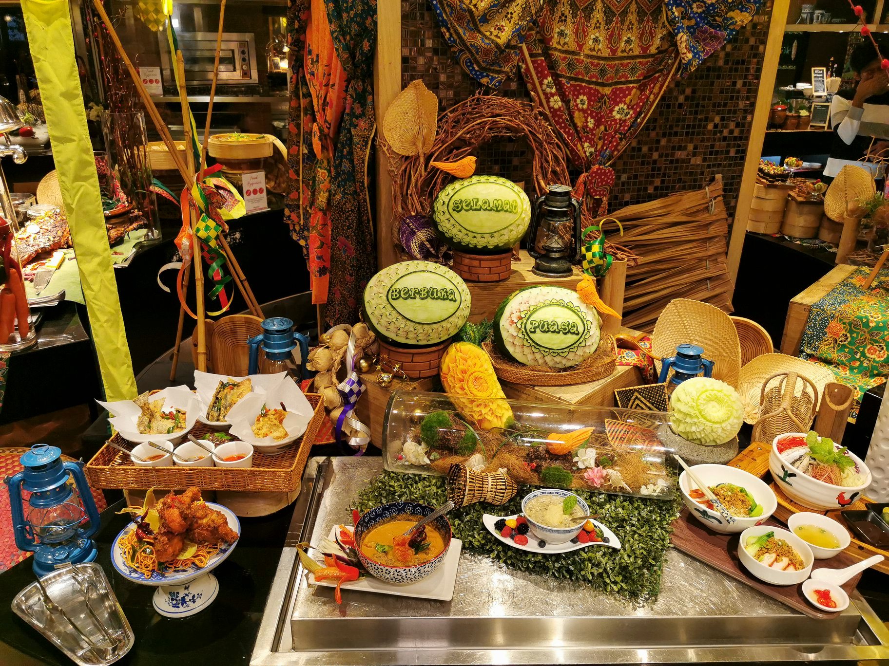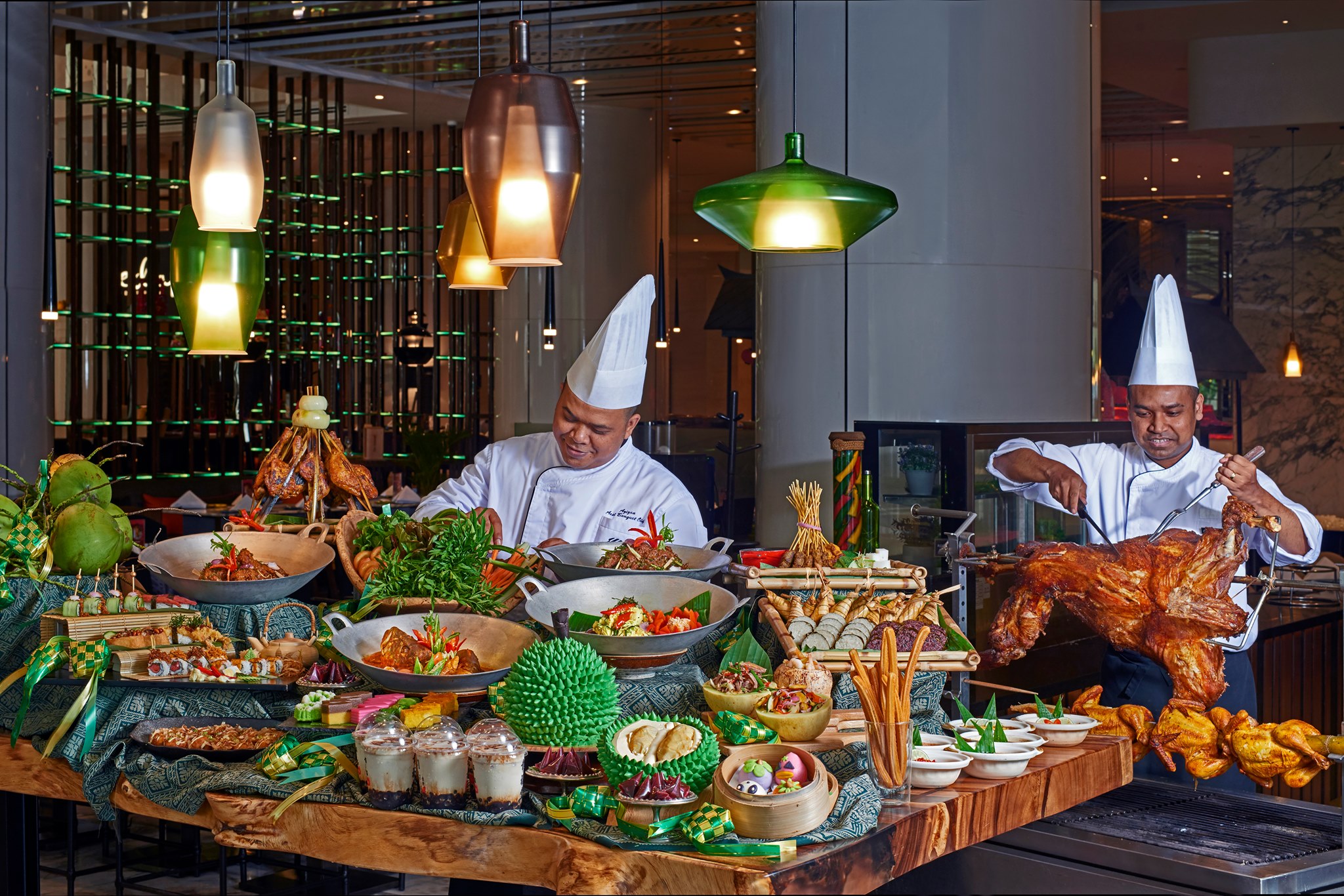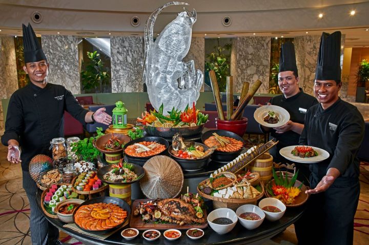 The buffet will include more than 200 dishes; highlights include Daging Masak Hitam and Kambing Masak Merah, Lemang served with rendang ayam/ daging, Satay, Murtabak, Satay, Seafood with kam heong sauce, Otak-otak, Ulam ulam, Ketam masak lemak, Bubur lambuk udang, Nasi tomato, Ikan merah asam pedas and more.
