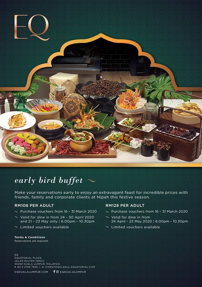 Early Bird Citarasa Nipah Vouchers at RM108 per person selling from 9 – 31 March 2020 (Redeemable from 24 – 30 April 2020 and 21 – 23 May 2020)