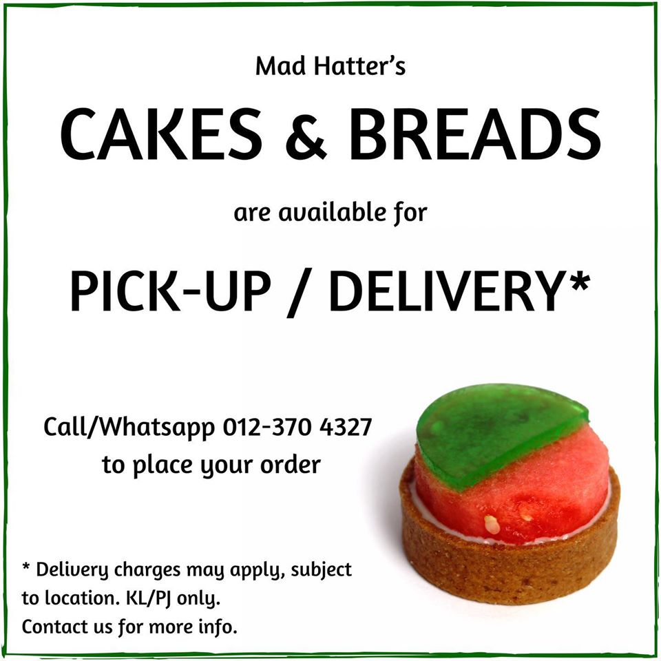 MadHatter Desserts has a limited menu available for takeaway and delivery (add RM1 for packaging per item):