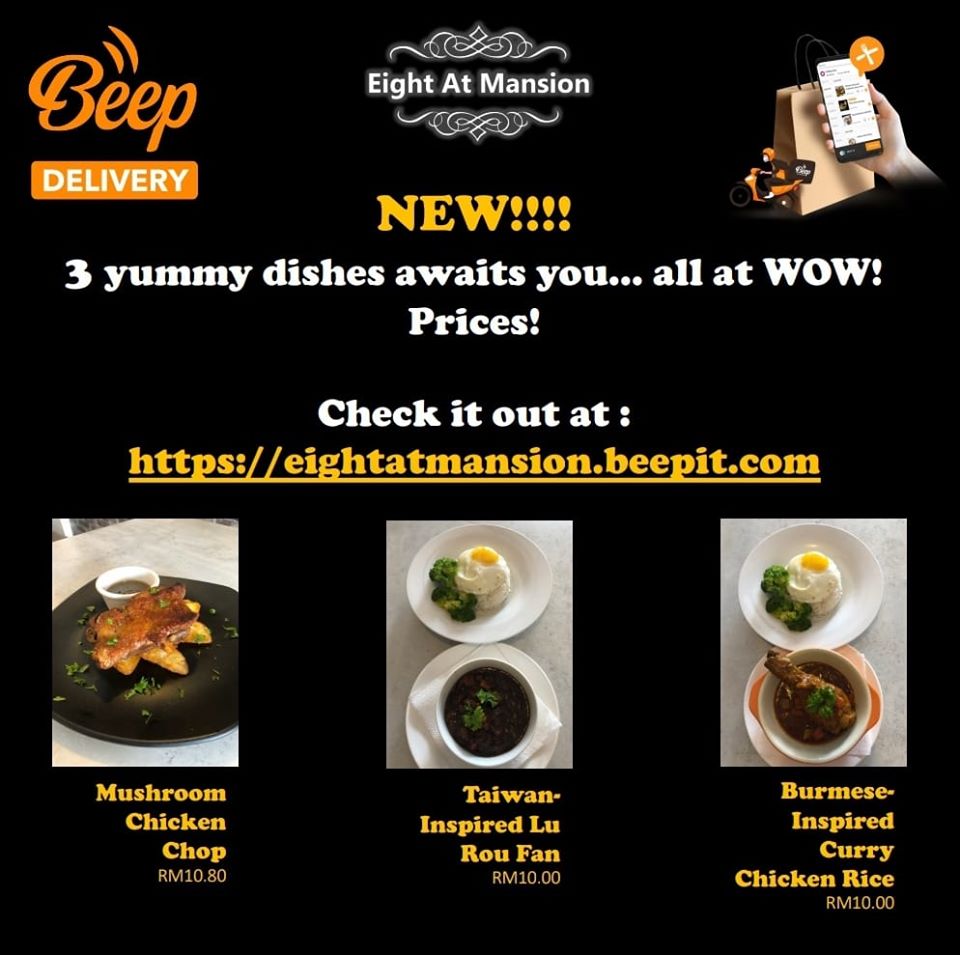 Available for self pick-up or delivery within 12km or you can choose self pick-up and arrange own delivery services. Order at http://eightatmansion.beepit.com