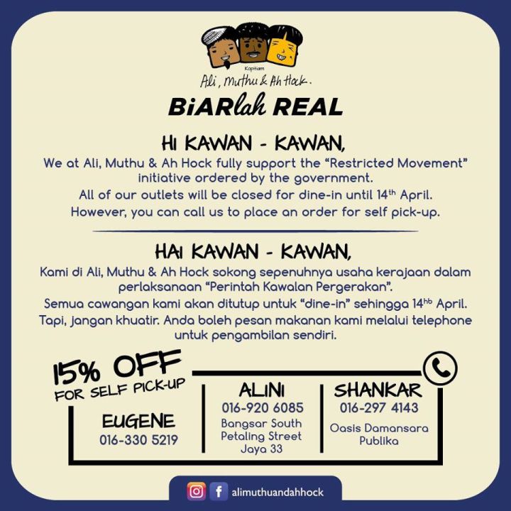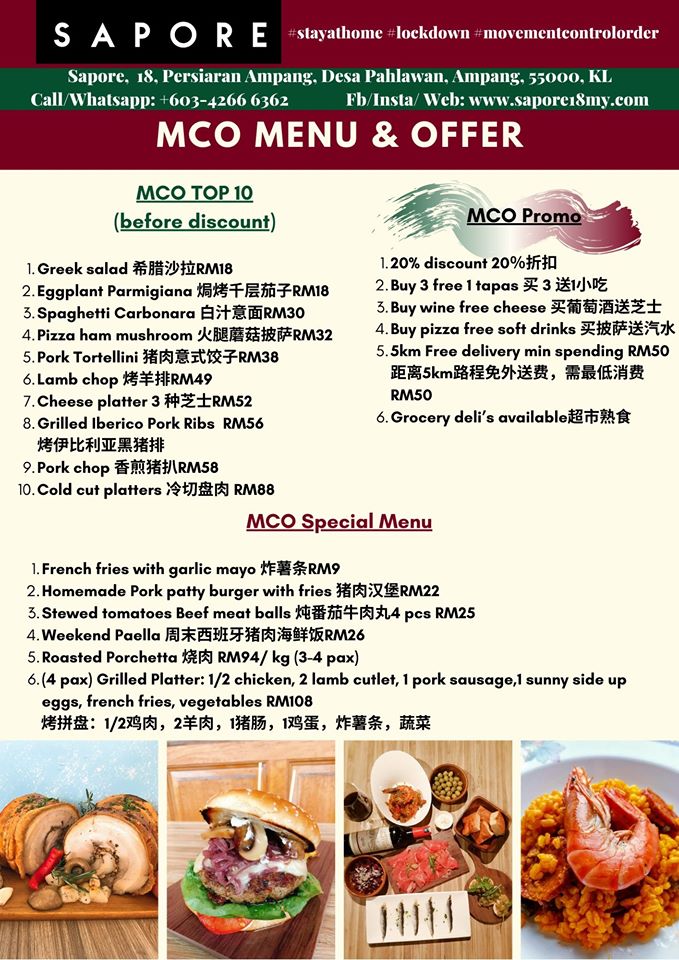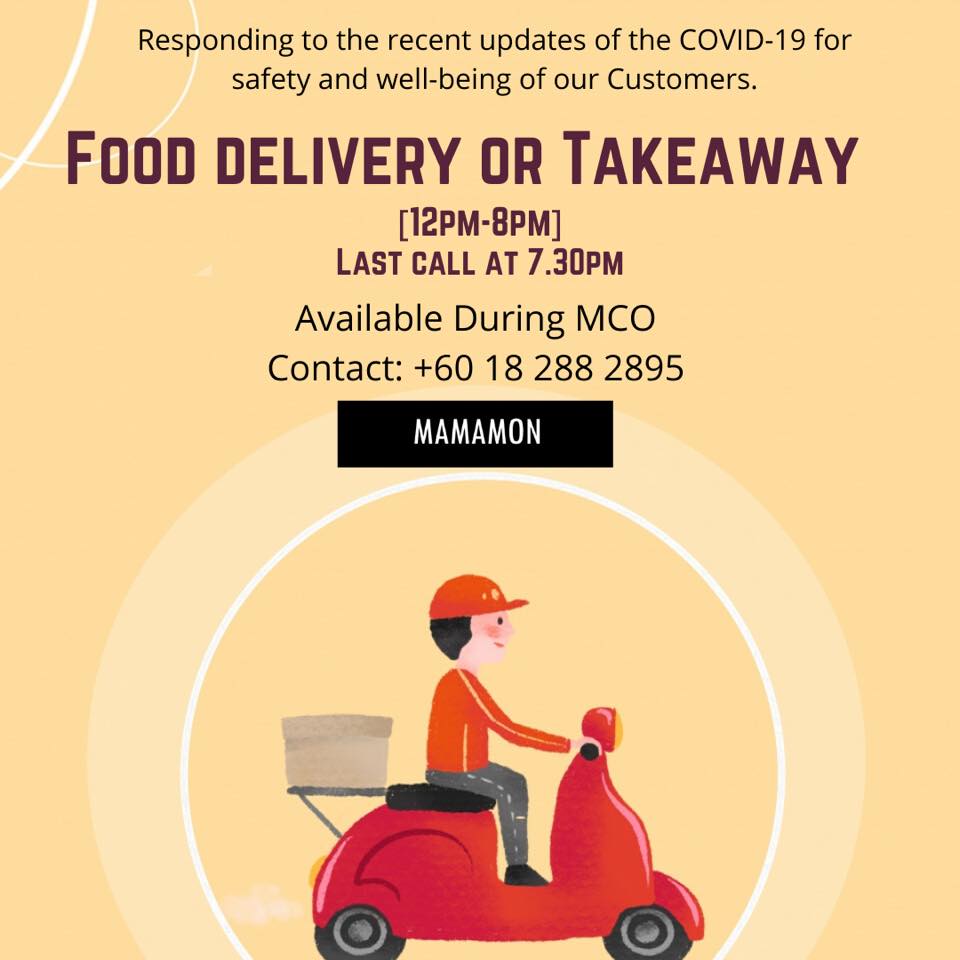 Food Delivery and Takeaway is available at Mamamon throughout MCO Period everyday:
