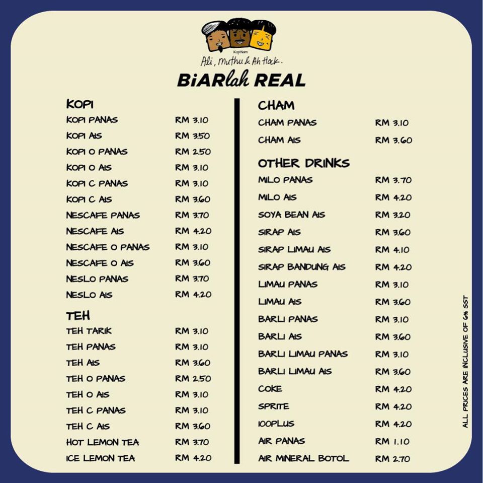 *All prices subject to 6% SST