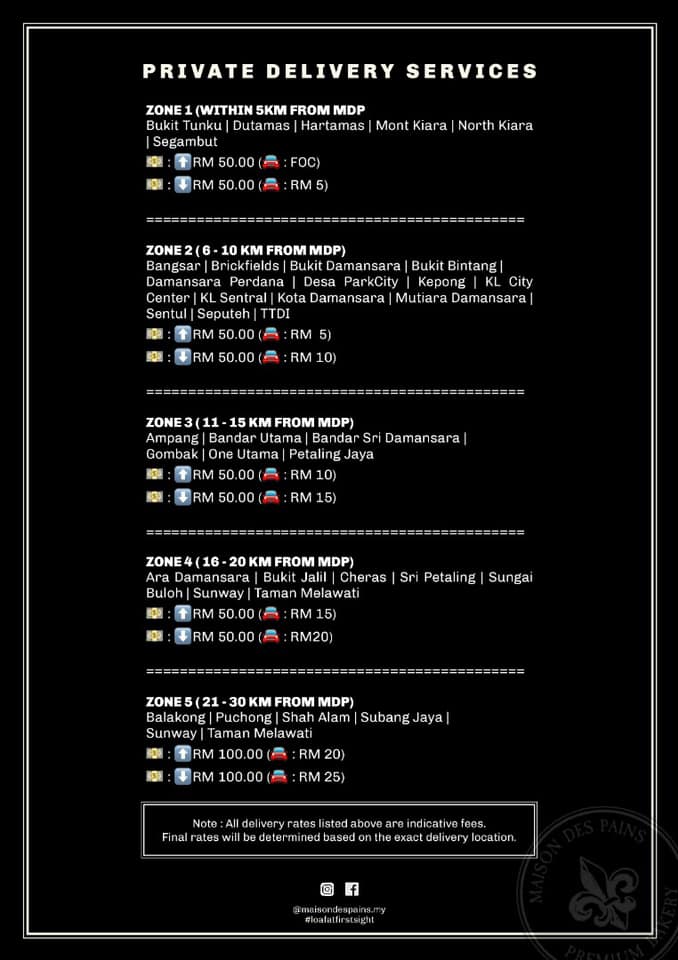 Bref by Darren Chin offers delivery to any location in the Klang Valley.