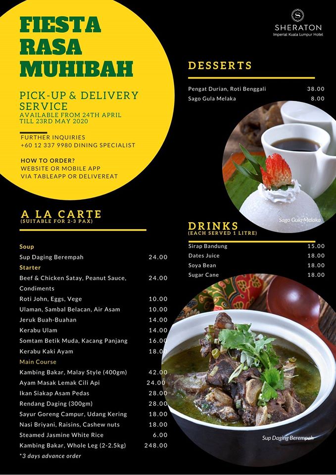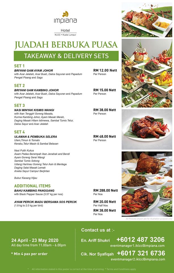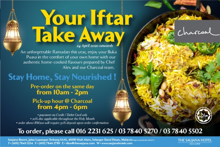 Here’s the updated list of Ramadan 2020/ buka puasa/ iftar takeaway and delivery menu and promotions by the following hotels/ restaurants: