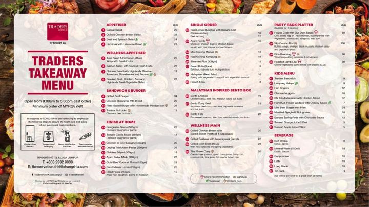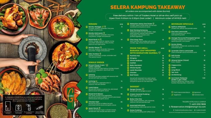 Traders Hotel Kuala Lumpur has two (2) menus available for takeaway/ delivery namely Selera Kampung and their normal (MCO) takeaway menu.