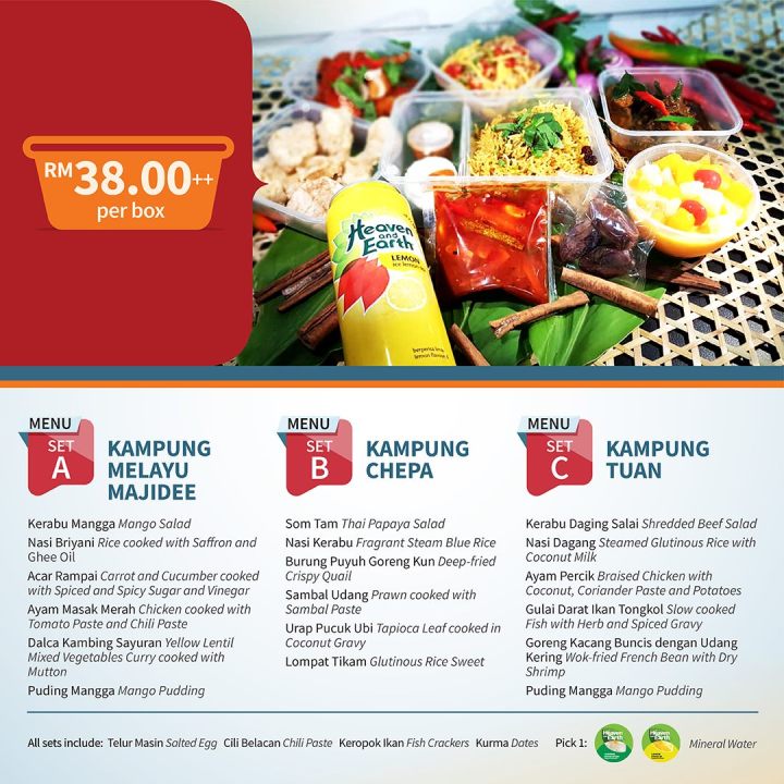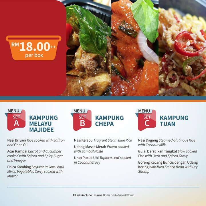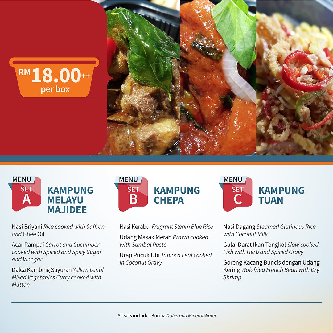 Minimum order for three (3) persons is applicable for all Ramadhan delivery sets. Available daily from 10.00am- 4.00pm.
