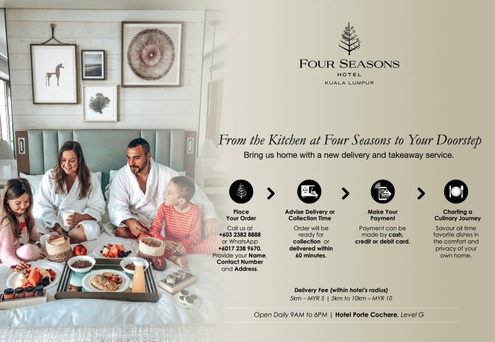 Savour award-winning and all-time favourite dishes from Four Seasons Kuala Lumpur in the comfort and privacy of your own home, with the hotel’s new delivery and takeaway service, starting from 20 April 2020.