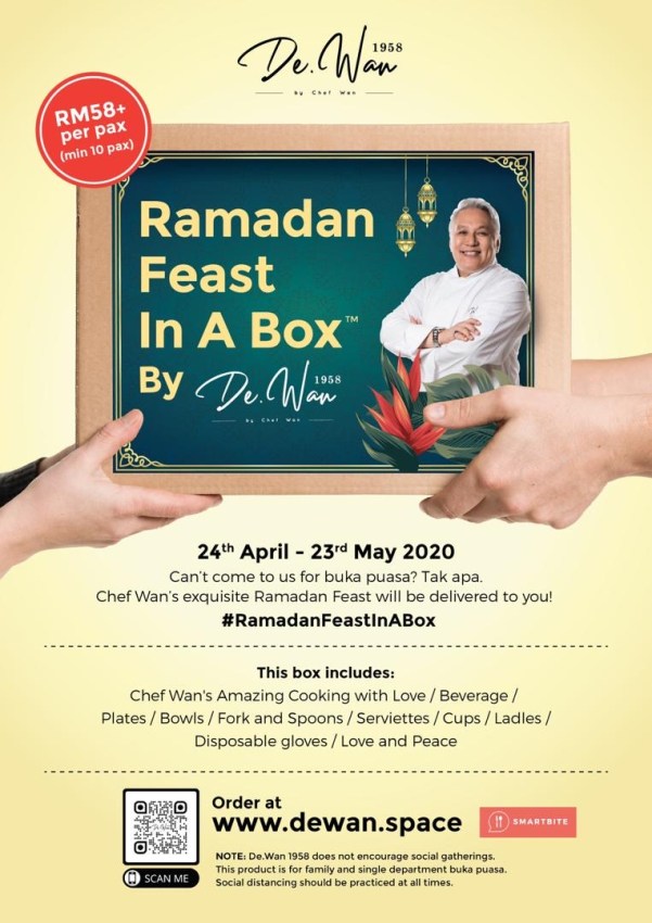 The Ramadan Feast In A Box by De.Wan 1958 lets you experience Chef Wan’s Exquisite Ramadan Feast at the office with your colleagues or in the comforts of home with your family.