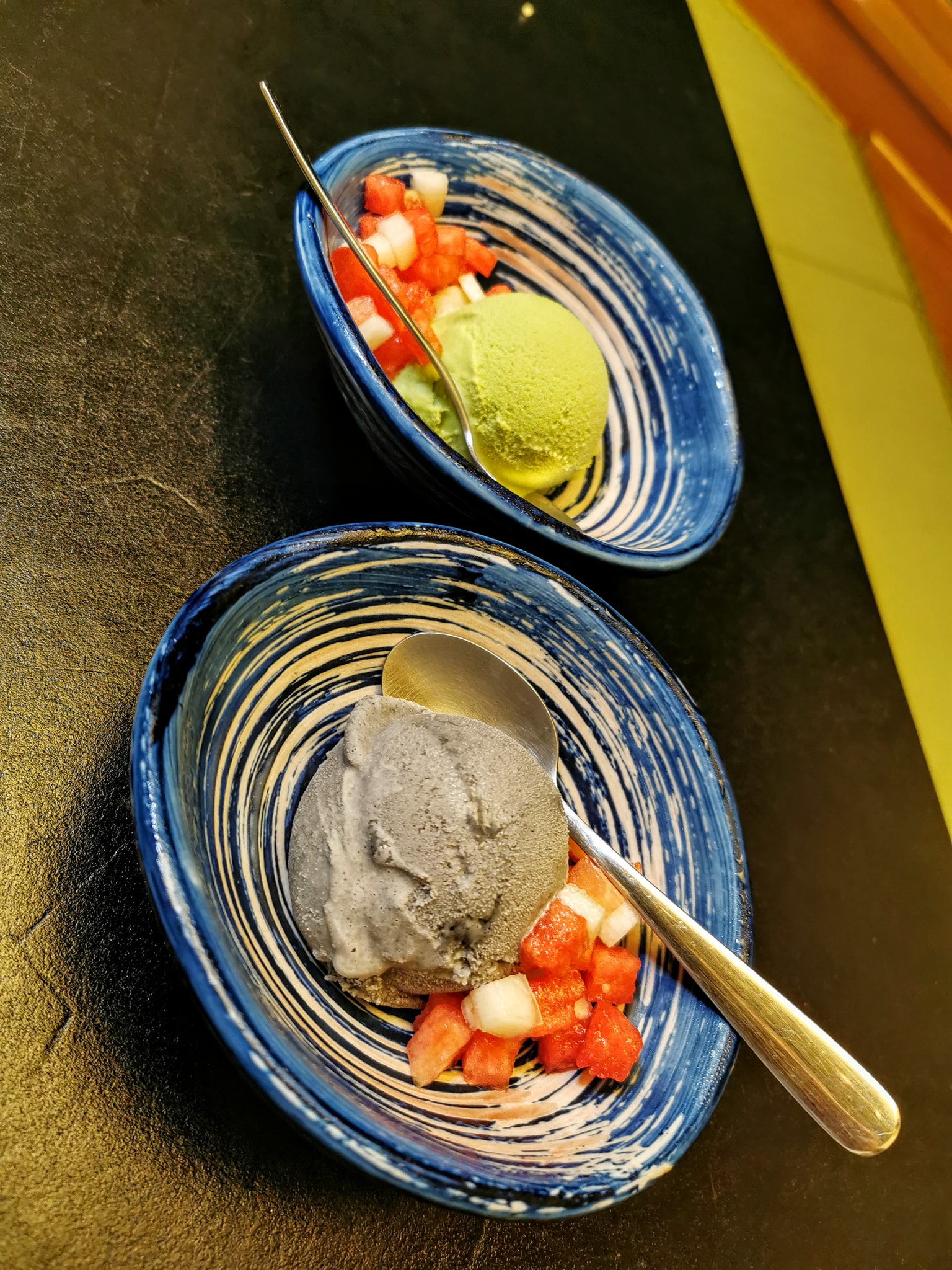 Select from three (3) flavours. We opted for the green tea and roasted black sesame flavours. She had the green tea ice cream which she really enjoyed while I had the roasted sesame which I thought had lots of lovely earthy flavours!