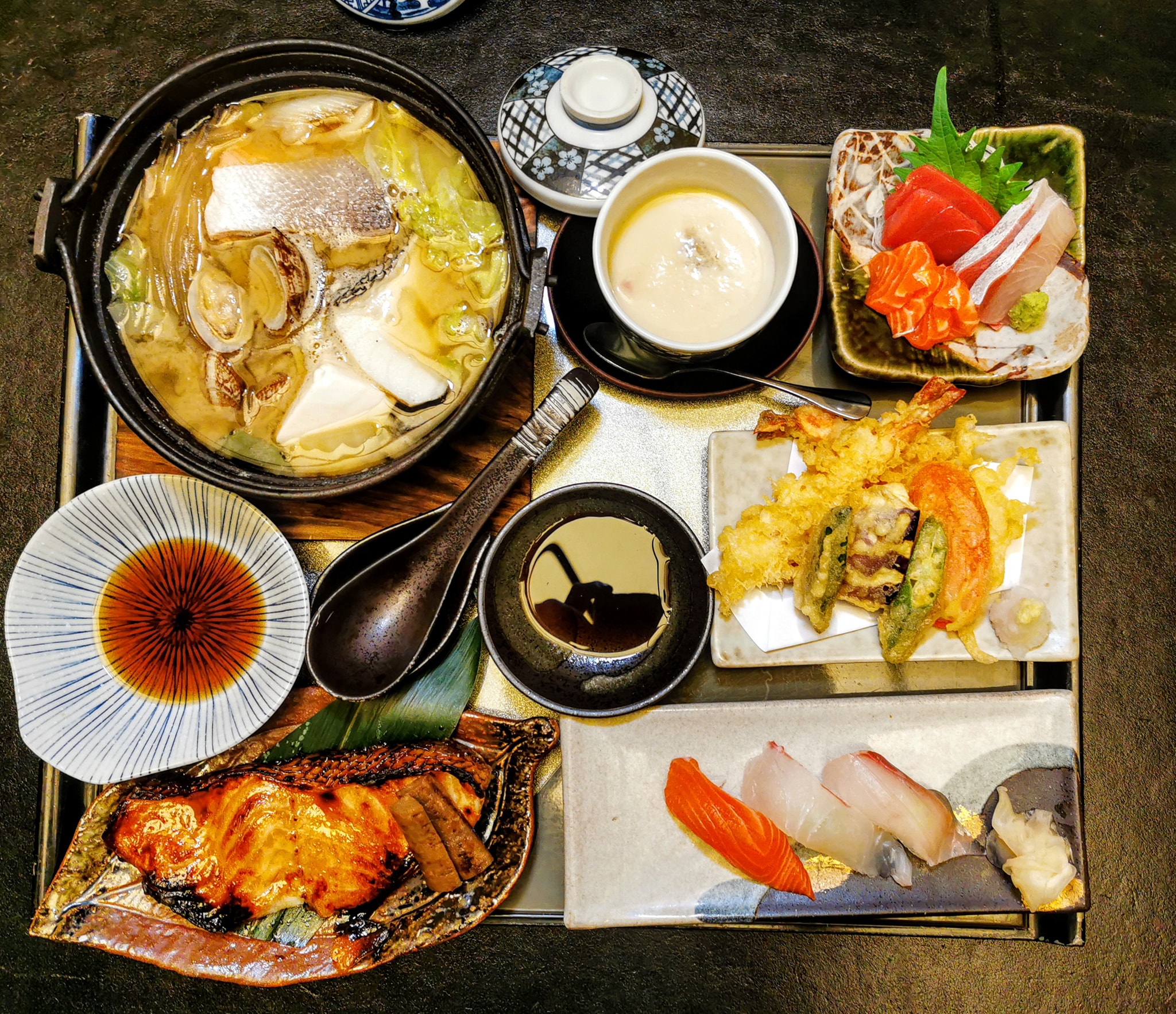 We tried both special 6-Course Japanese meals by Chef Masami Okamoto. The Kaisen Seafood menu includes Prawn Tempura, three kinds of Sashimi, and Grilled Cod Fish, while the Wagyu beef set includes Wagyu as Shabu-Shabu and a steak.