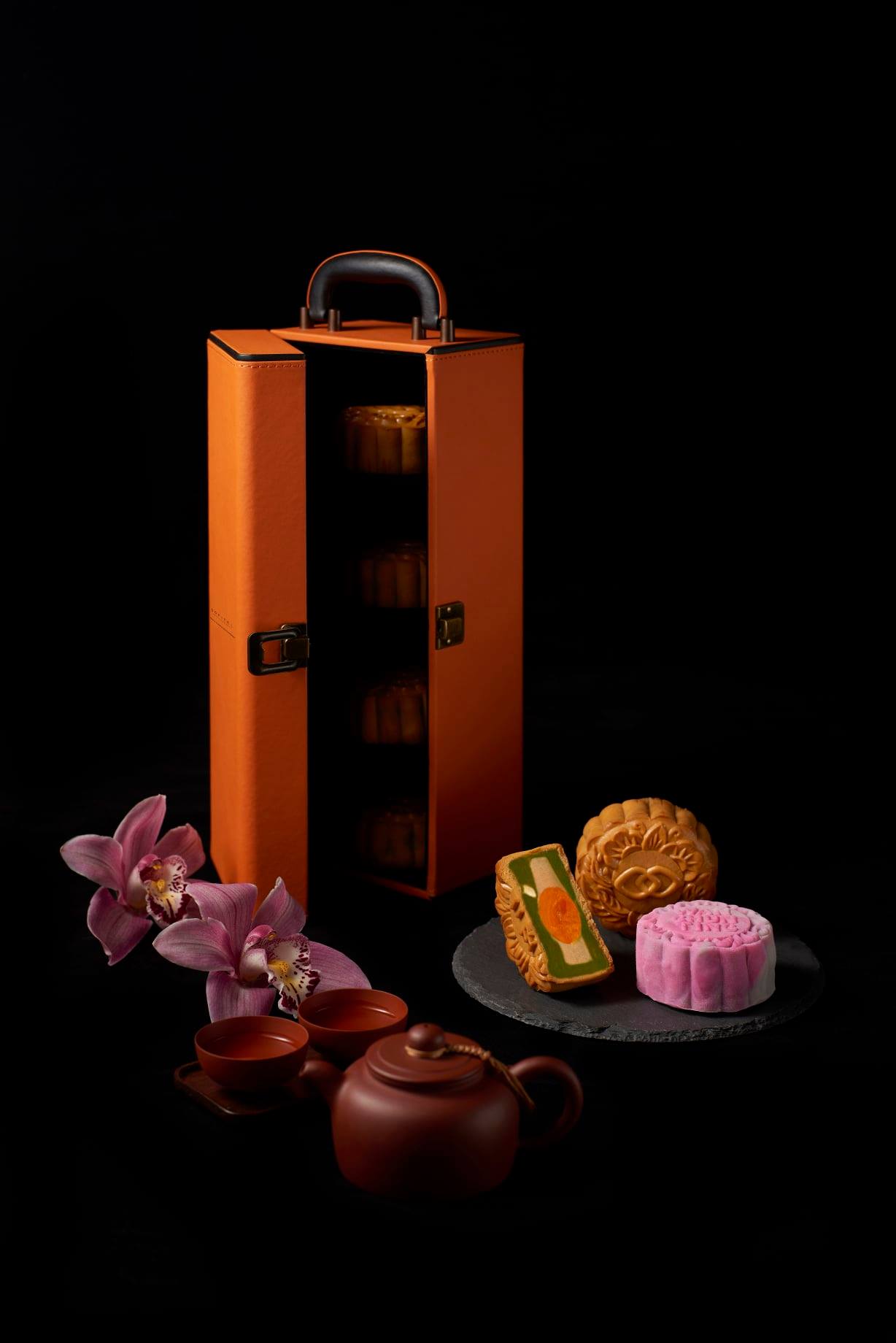 Baked Mooncakes are also on the menu, with coveted fillings such as pu er tea paste with tangerine skin, and all-time classics such as white lotus seed paste and red bean paste. Some varieties feature an egg yolk, a symbol of the harvest moon and a sign of good fortune. The mooncakes come in a custom gift box, available in single- and double-decker editions.