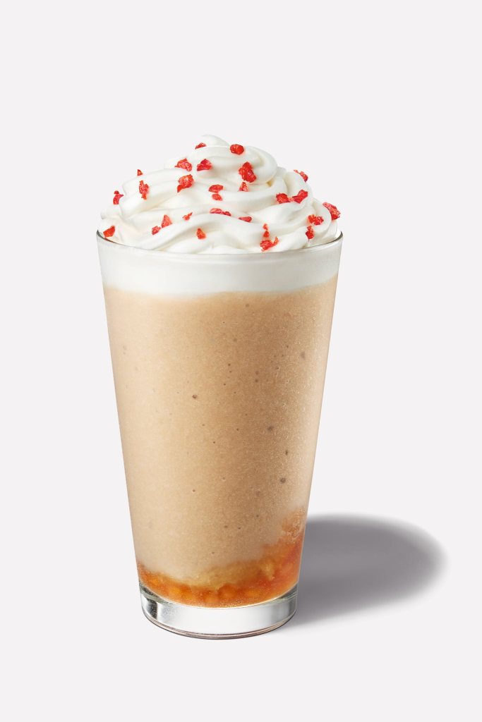 A creamy blend of Starbucks® signature espresso, steamed milk and spiced apples, the new Jolly Baked Apple Latte is a multi-sensory holiday delight. Topped with a whipped cream dome, a delicate drizzle of baked apple sauce and candied apple sprinkles gives this beverage its perfect holiday touch. The Jolly Baked Apple Latte is available as a hot, iced or blended handcrafted beverage by request.