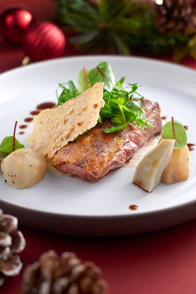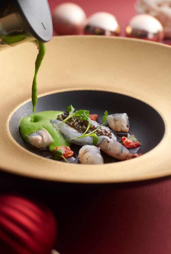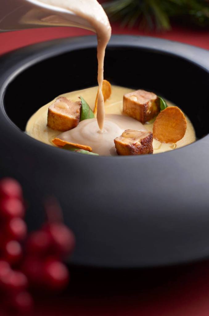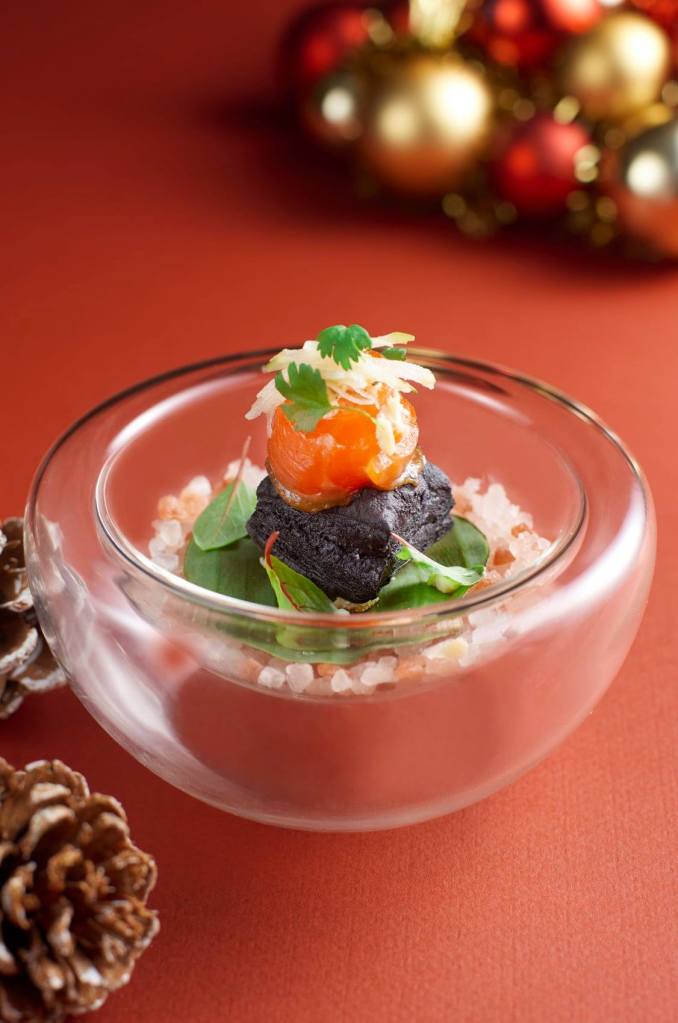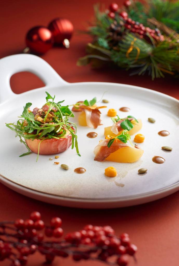 The Christmas Day in the Skies at Sabayon menu happens on 25 December 2020 from 12PM – 3PM. The 4-course dégustation menu includes torched otoro tartare, sweetbread cannelloni, guinea hen and foie gras or five-spice Christmas duck and a dessert course of port wine Sabayon. Priced at RM588 per adult, with a glass of Champagne Barons de Rothschild Brut.