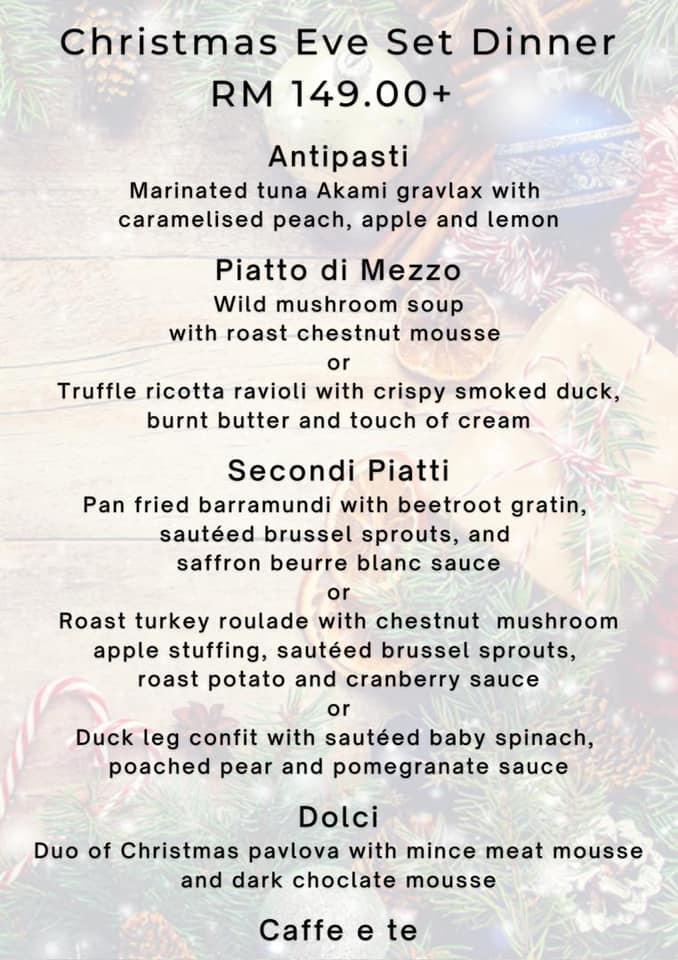 Price: 24th December 2020 (Dinner) – RM170nett, 31st December 2020 (Dinner) – RM145nett