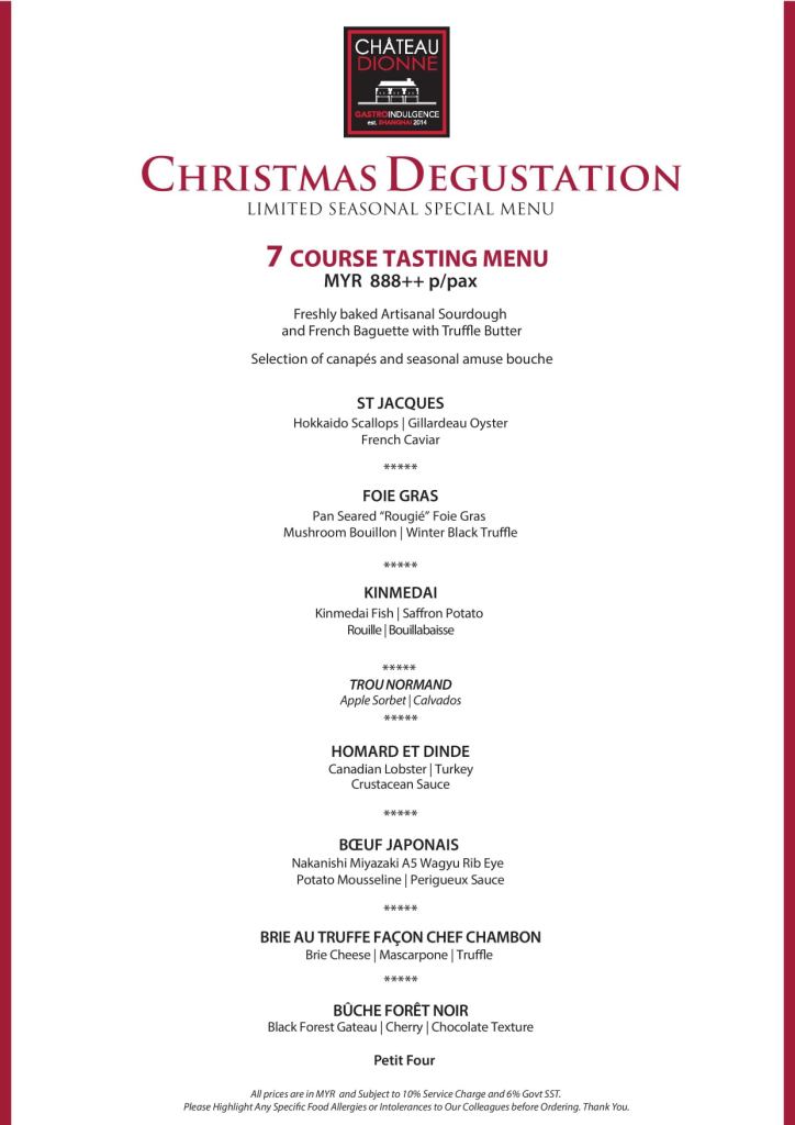 Executive Chef Andy Choy at Chateau Dionne Kuala Lumpur has prepared a luxurious spread of specially created festive dishes for this Christmas! The Christmas lunch tasting menu is available from 22 to 25 December 2020, while the Christmas dinner tasting menus are available from 19 to 25 December 2020.
