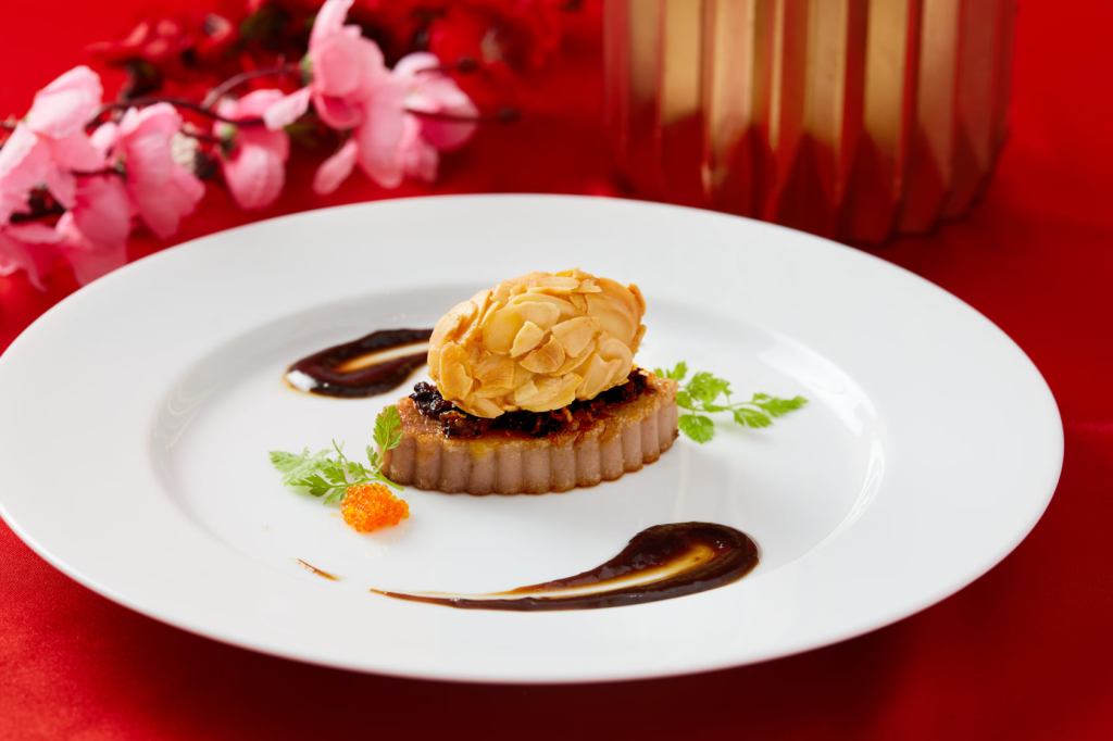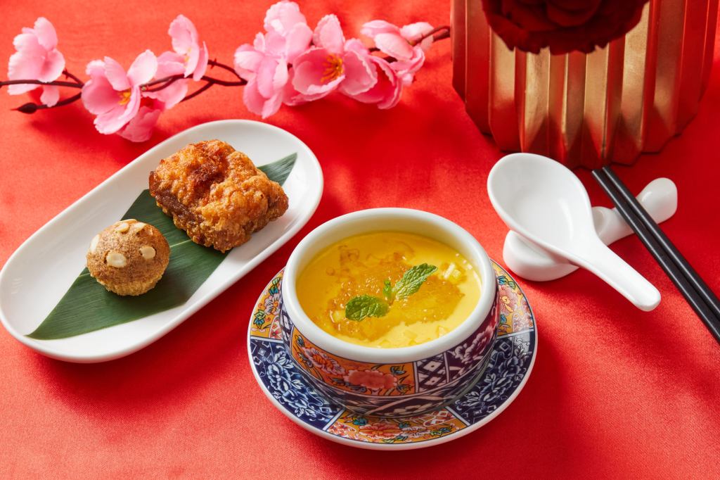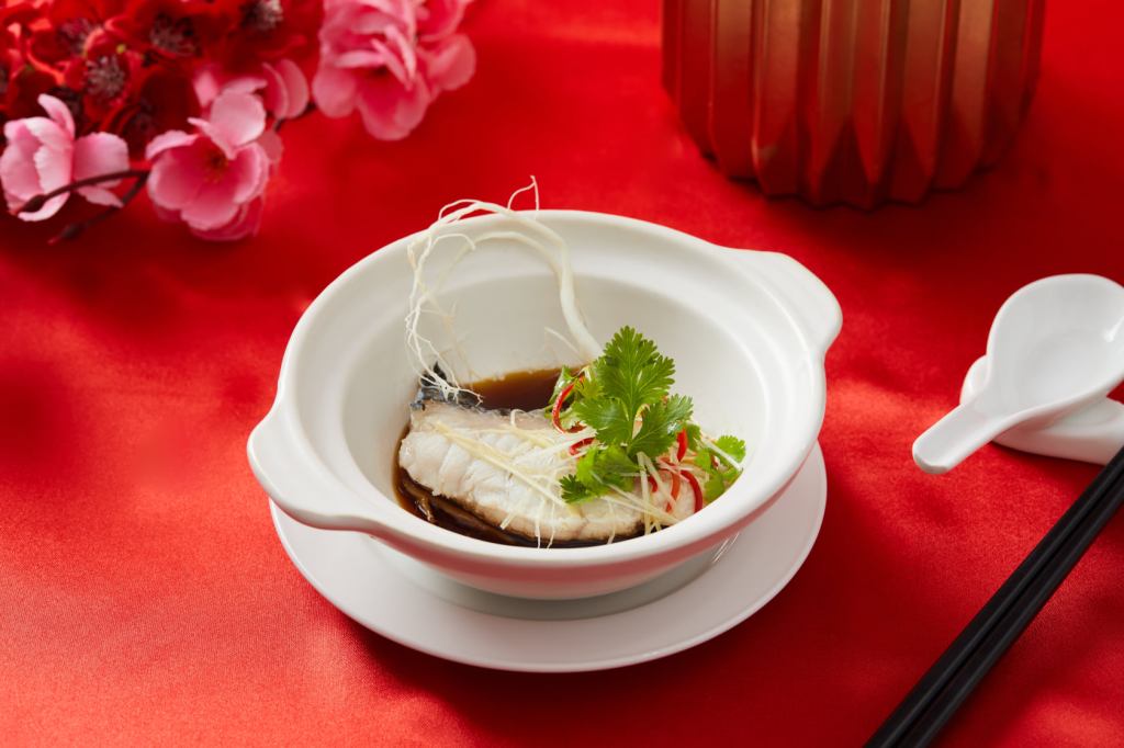 Noteworthy dishes include the Four Seasons Prosperity Yee Sang. Fragrant Healthy Grains Fried Rice with Preserved Meat wrapped in Bean Curd Skin, Braised Stuffed Sea Cucumber with “Fatt Choy”, Double Boiled Vitality 8 Heads Abalone Soup with Black Chicken and Sun-dried Scallops, Steamed “Golden Fish” Nian Gao and Chilled Sea Bird’s Nest all representing good luck, prosperity, and health.