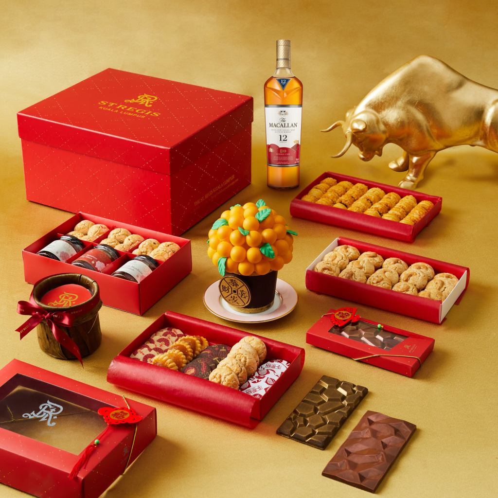 The St. Regis Kuala Lumpur “House of Fortune” will be your one-stop shop to pre-order and take away homemade cookies with signature spreads, cakes and the traditional “Nian Gao”. This year, add-on to your gifting with a selection of three large Prosperity Boxes filled with a collection of homemade goodies priced from: