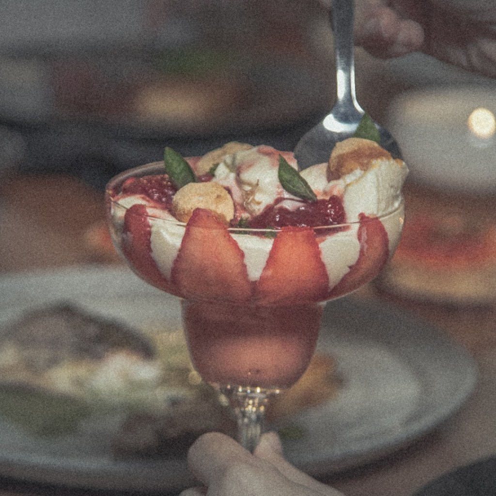 Hazelnut, Lemon and White Chocolate Pudding, Yuzu Honey Shooter Tube with Strawberry Mascarpone Cream