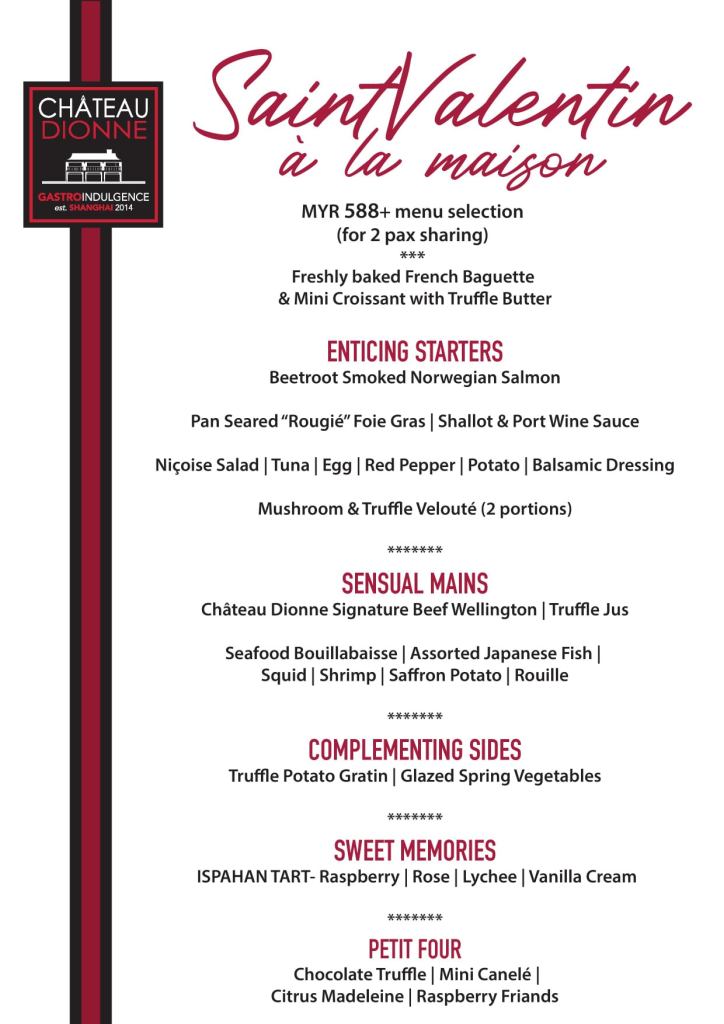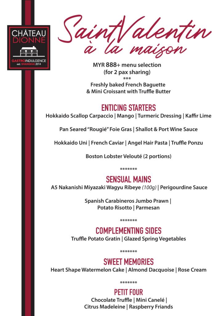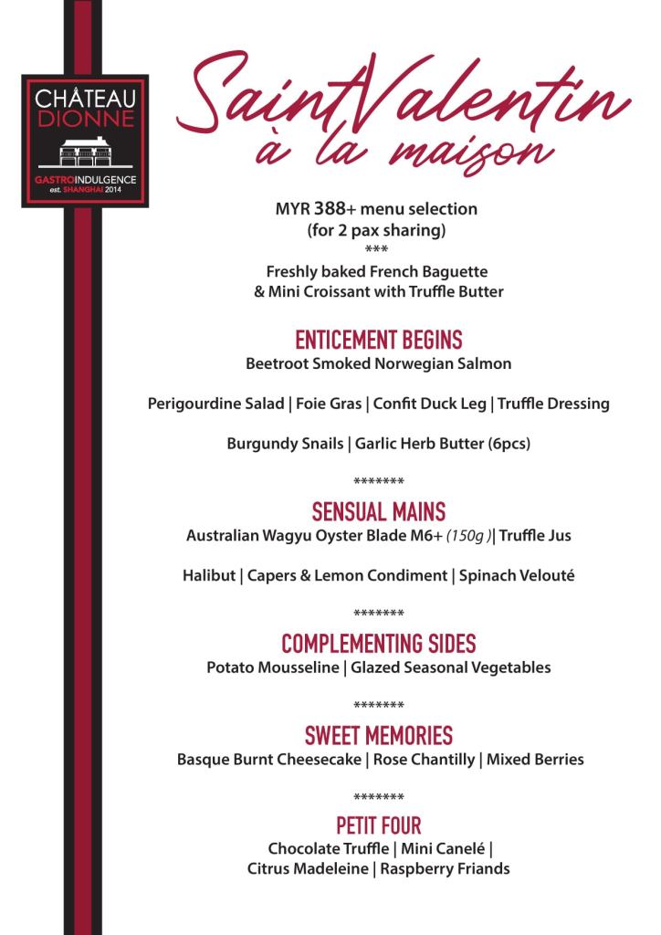 Valentine’s 2021 Takeaway package is priced at RM388 nett per couple and includes: