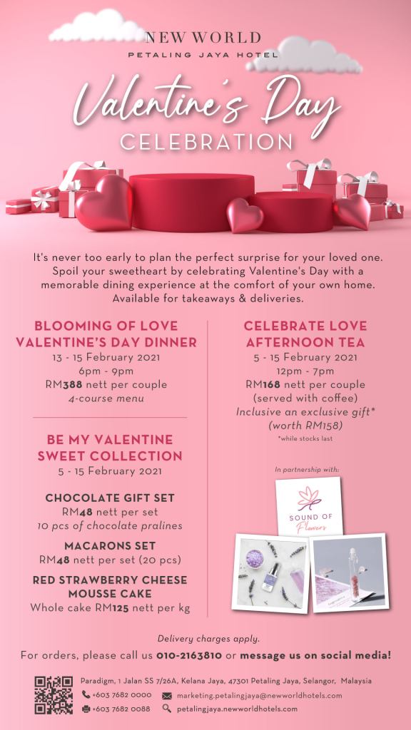 This Valentine’s Day, New World Petaling Jaya Hotel presents an array of romantic culinary events for takeaway and delivery.