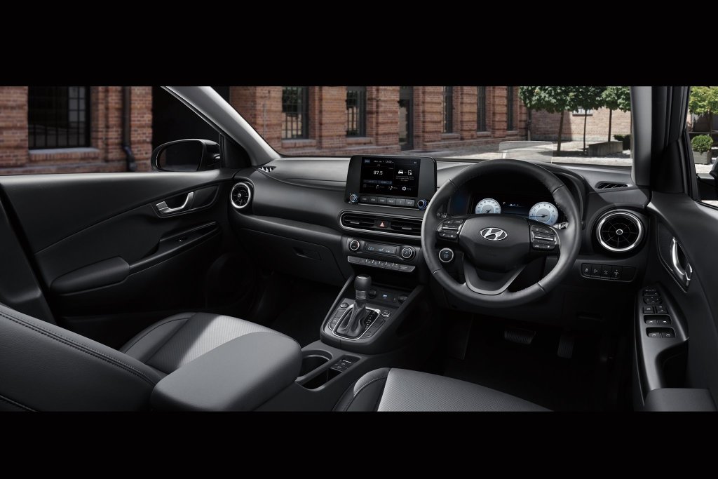 The cabin features a redesigned interior that expresses a more upscale and progressive look than its predecessor. The new console area is separated from the instrument panel to emphasize the horizontal layout. The dashboard appears wide and airy to create a generously spacious atmosphere. An electric parking brake with auto hold function is added as a new convenience feature in response to customer demand. Additionally, the new Kona now also gets a remote engine start function by using the smart key.