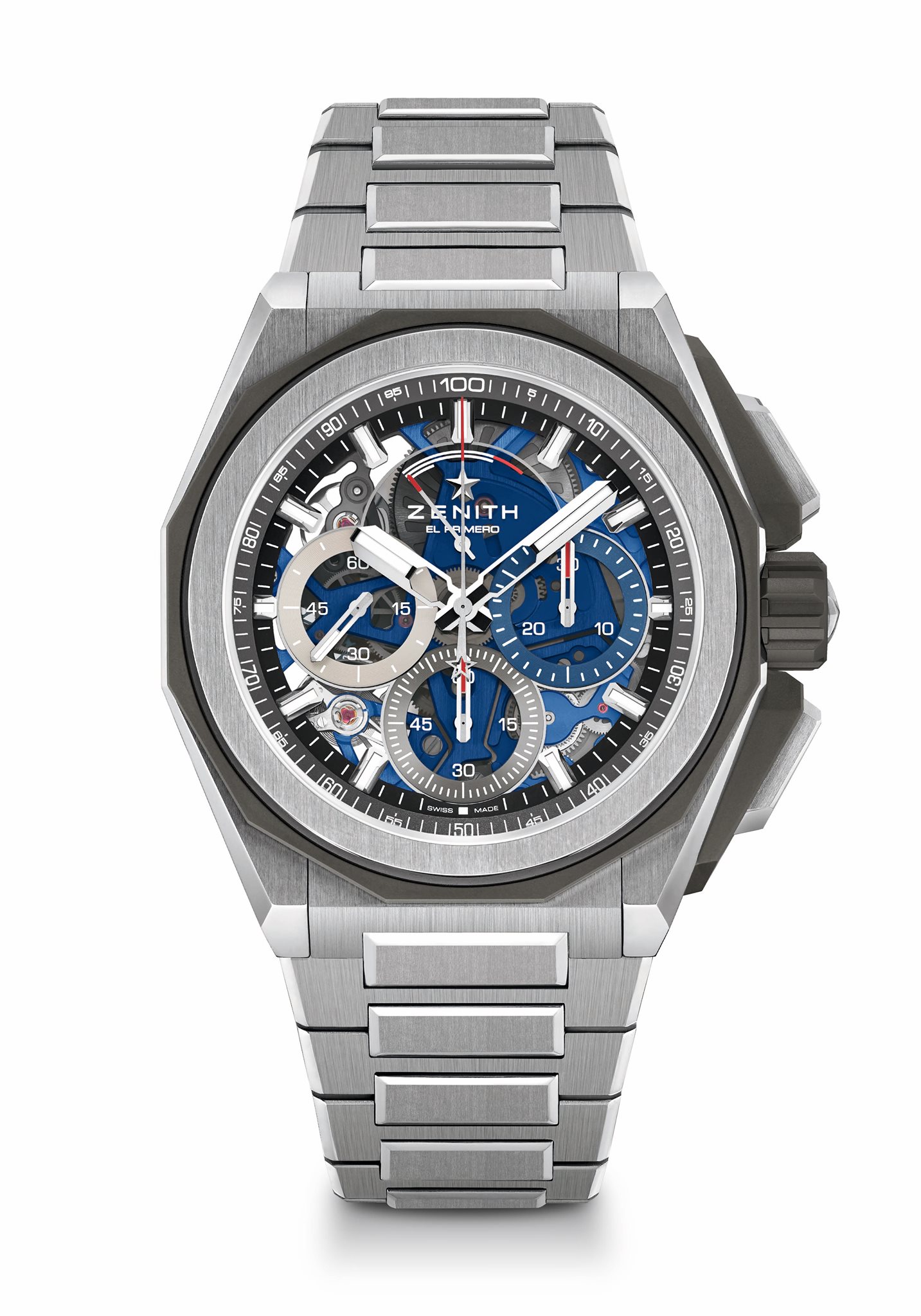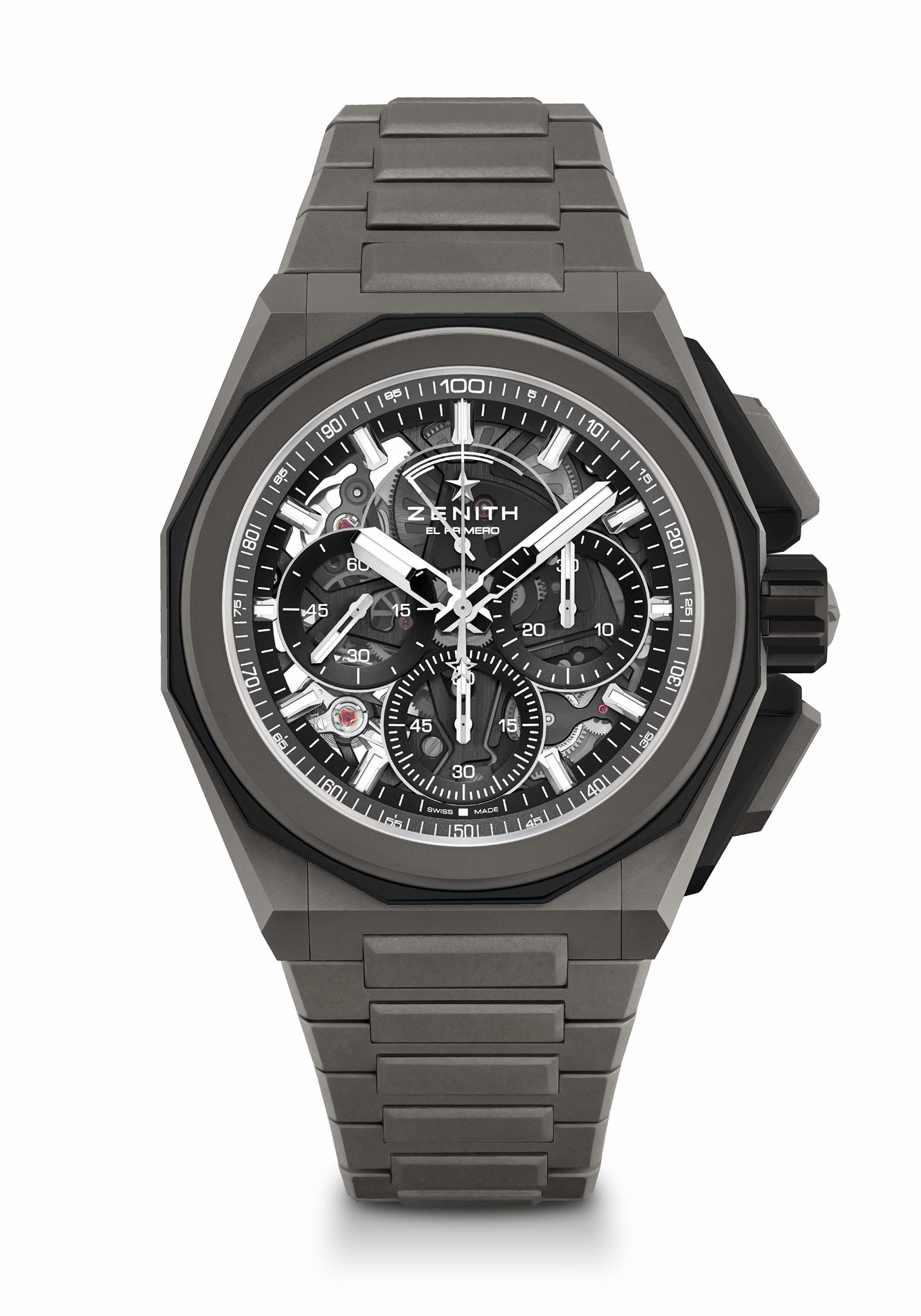 Because uncompromising performance in extreme conditions also means adapting to the environment around us, each DEFY Extreme comes with three different straps with quick strap-change mechanisms: A mircroblasted or polished and satin-brushed titanium bracelet, a rubber strap with a folding buckle matching the case and, a first for Zenith and the DEFY line, a Velcro® strap that can be easily and precisely adjusted on the go, with the textile material perfectly suited for any situation – and certainly not afraid of getting wet. Going beyond a simple cosmetic switch-up, each option offers different properties for a different wearing experience, perfectly adapted to its surroundings and the activities it takes on, no matter how extreme.