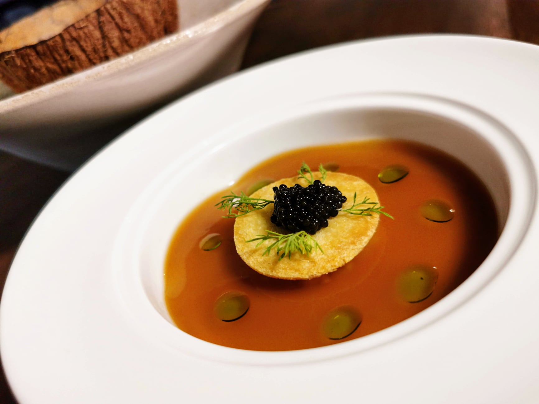 The restaurant strives to use every single part of the ingredients, keeping sustainability of the environment in mind. For example, the duck carcasses are roasted to make a consommé for the Cappelletti.