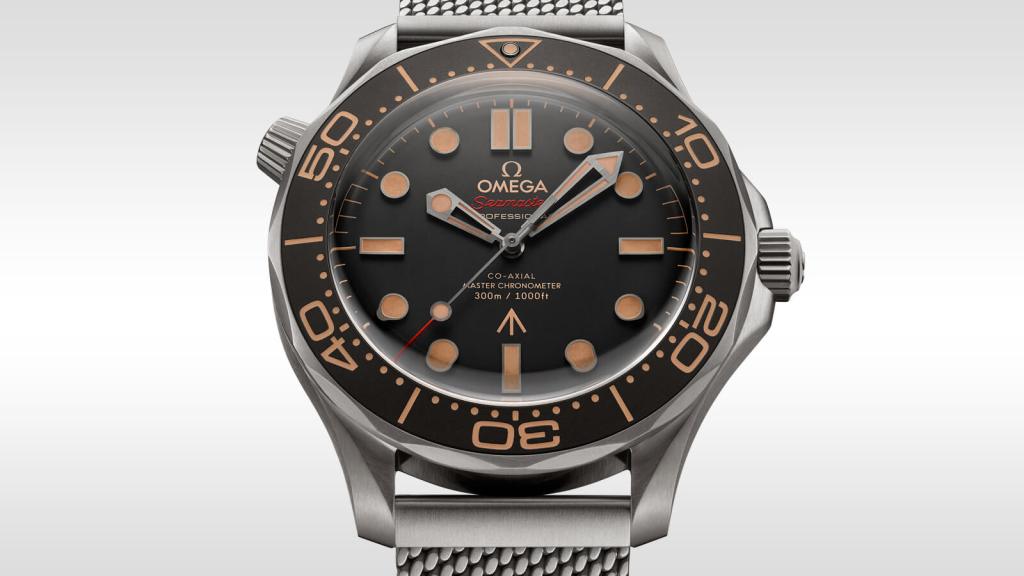 The OMEGA Seamaster DIVER 300M CO‑AXIAL MASTER CHRONOMETER 42 MM007 Edition is identical to 007’s watch in No Time To Die, with strong yet lightweight Grade 2 Titanium, a brown tropical aluminium bezel ring and dial.
