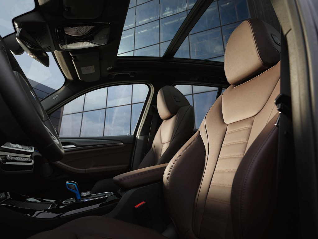 Auto Bavaria will offer a wide range of exterior colours for the First-Ever BMW iX3 M Sport in the Impressive variant, including M Carbon Black Metallic, Mineral White, Sophisto Grey Brilliant Effect and Cashmere Silver – all complete with Leather Vernasca in Mocha with Black Décor Stitching.